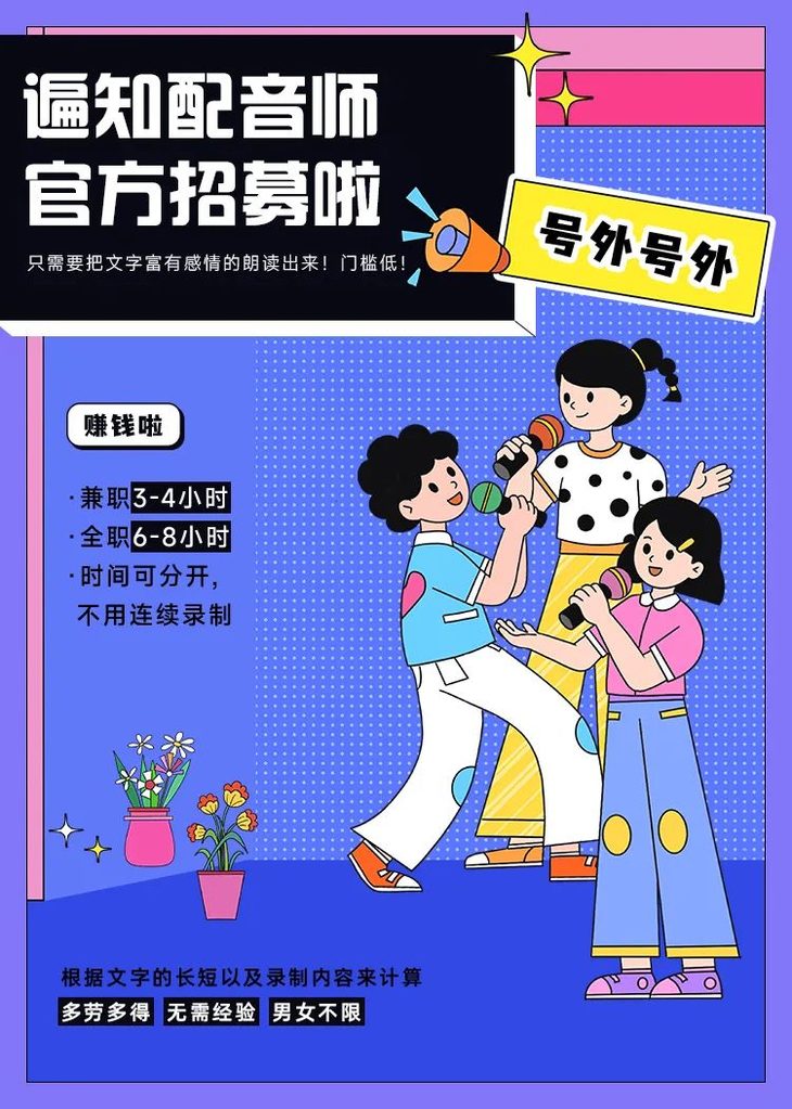 急招配音员!无门槛,朗读文字内容即可,男女不限
