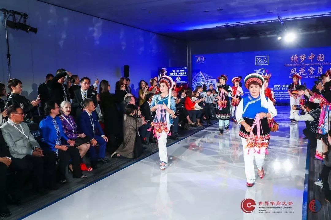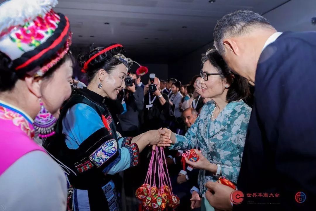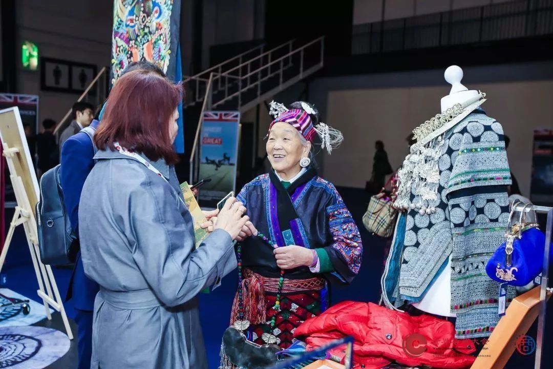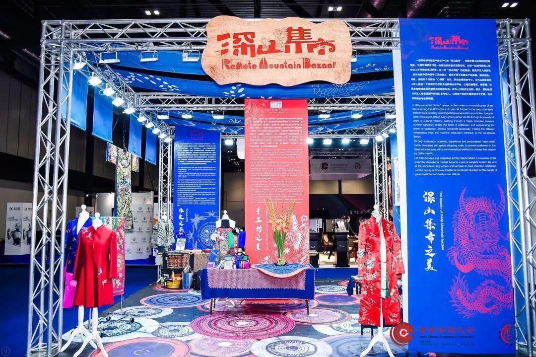 不谋而合的理念让世界华商大会与深山集市相遇,为更好弘扬中国传统文化,深山集市通过动机、场景、体验和个性化的“心零售”方式,还原大山深处的赶集氛围,为都市消费者打造难忘的体验式消费空间,让都市赶集人在上千年的文化记忆中穿梭,看见手艺人的面孔、亲手体验中国传统手工艺的魅力,感受不同于机器生产的温度。与此同时,为大山深处的手工匠人提供一个依靠手艺改变命运的商业化平台,让她们被看见、被尊重。大会现场,绣娘们用一针一线展示着自己民族的信仰与演变,苗族传说中的蝴蝶妈妈、象征高贵的吉宇鸟,踏着时代的脚步来到现代;色彩斑斓的人物与动物纹样静静地绽放于深沉修长的绣布之上,将来自过去的声音在异国唱响;鹿皮绒上盛开的纯手工刺梨花,将最温暖美好的祝福送给世界……在场嘉宾们或是驻足观看、探讨绣衣上的记录的故事,或是与绣娘们合影、交流,被来自中国的“民族范儿”深深吸引!