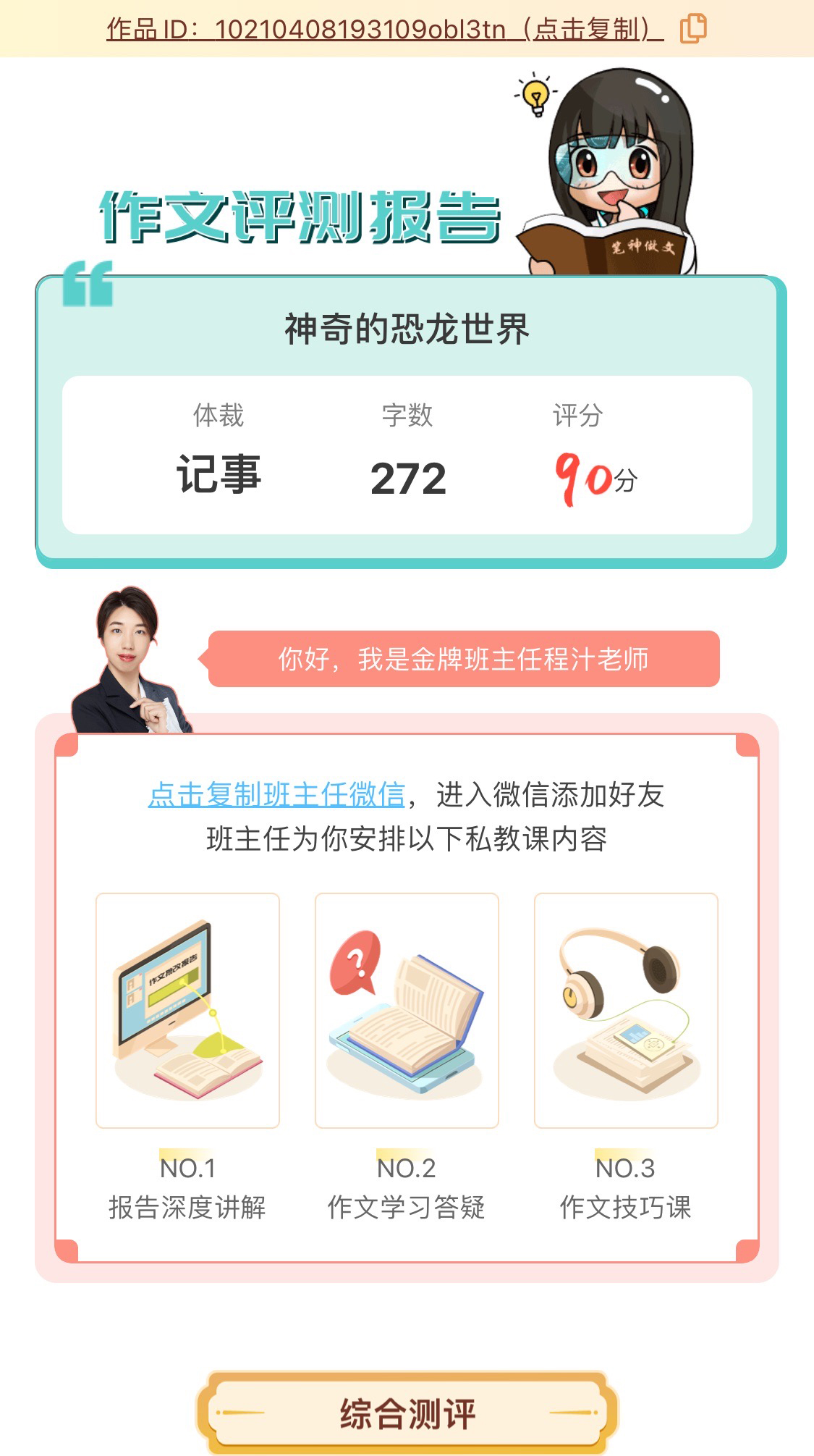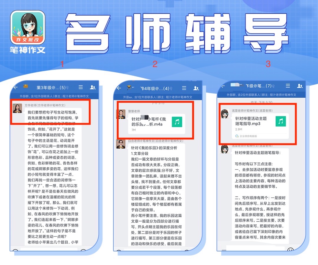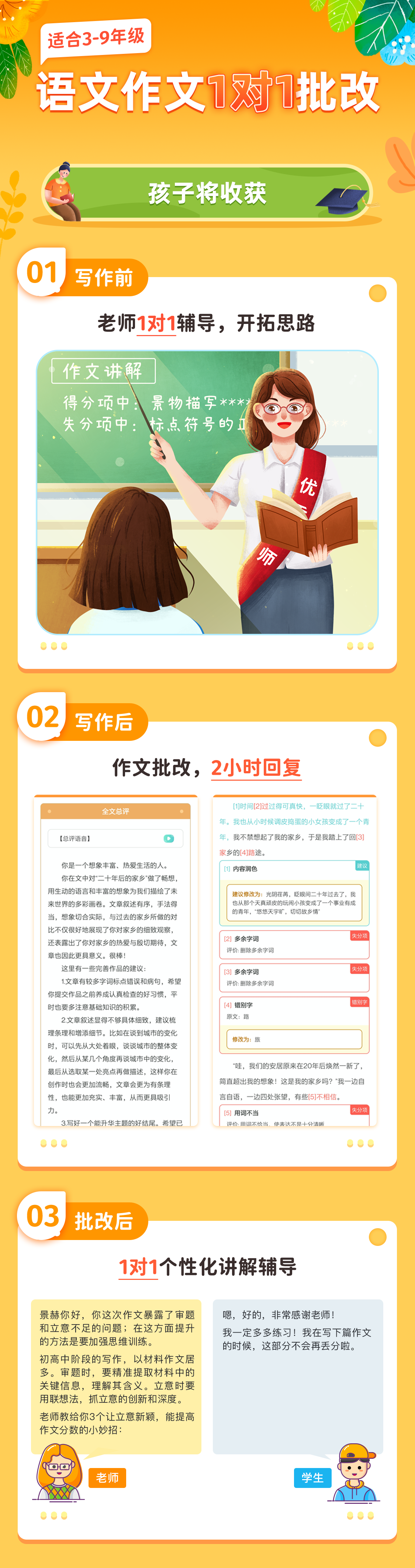 1、一对一辅导,从选题构思、写中辅导、写后修改,三个流程反复进行干预!让孩子的作文能被评为“老师会读”的范文!