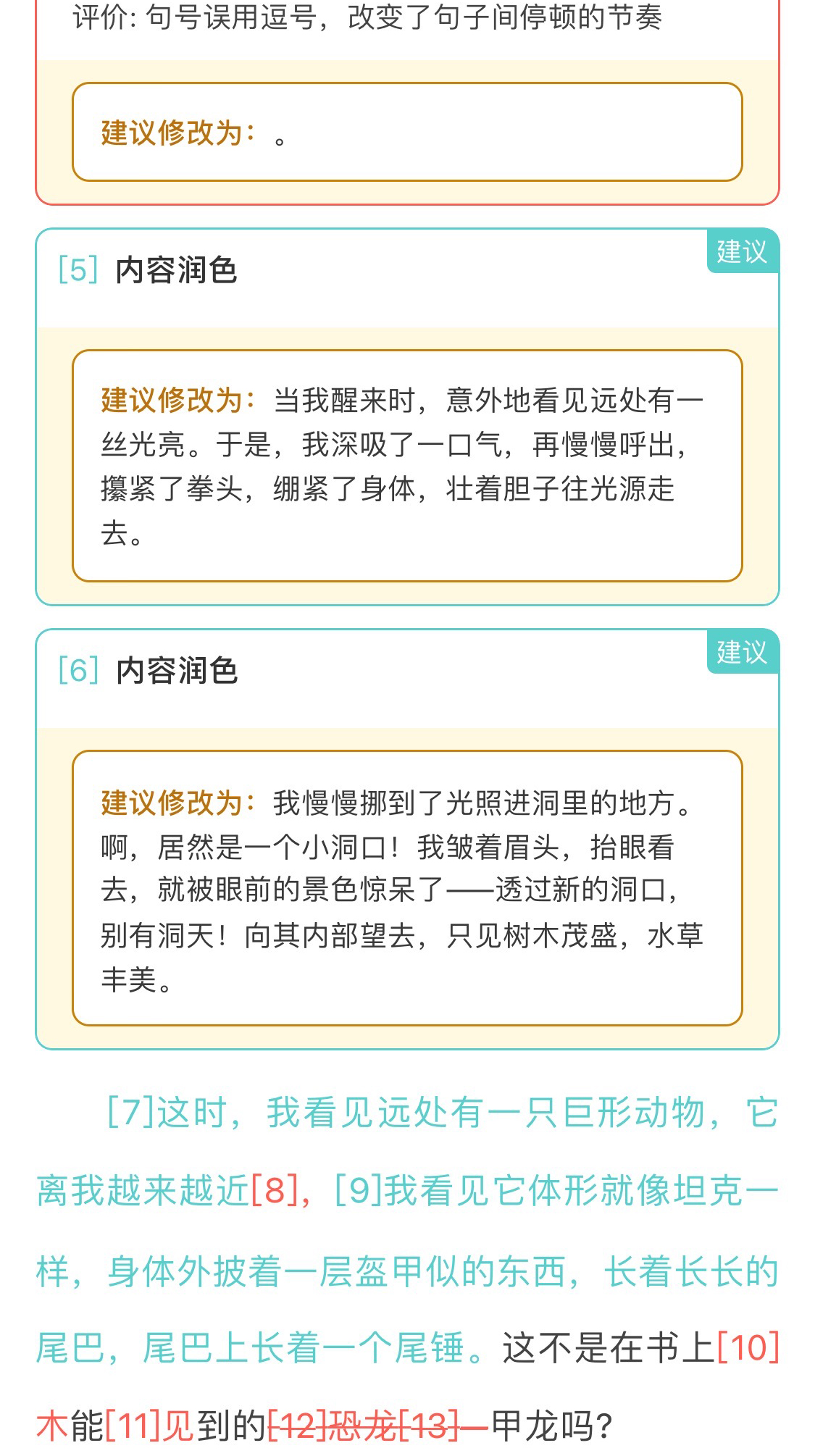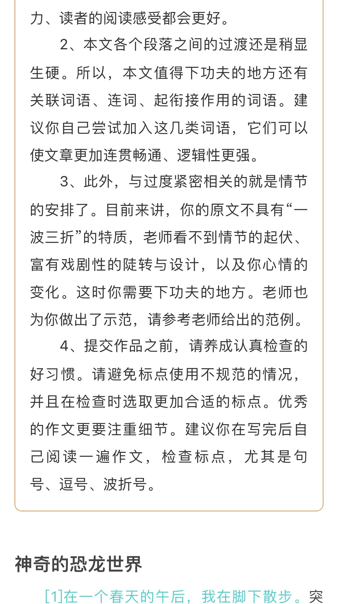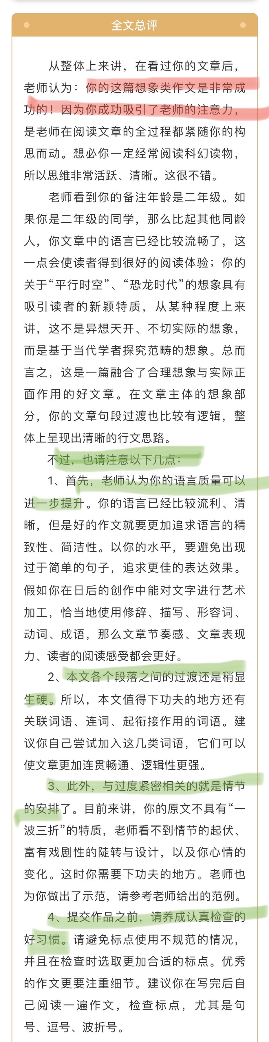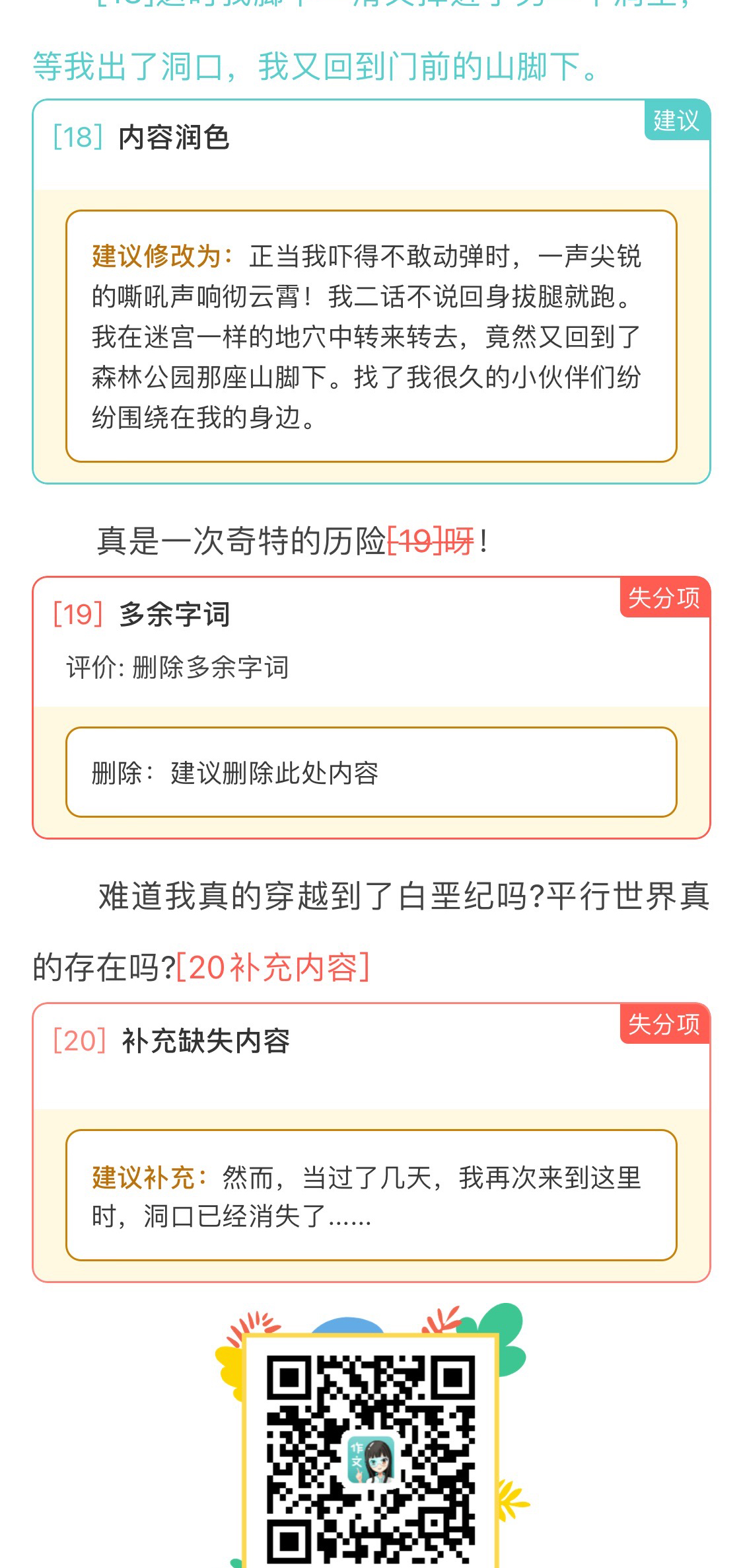 绿色部分是老师会指出孩子写作时候出现的问题,并给予修改的建议!