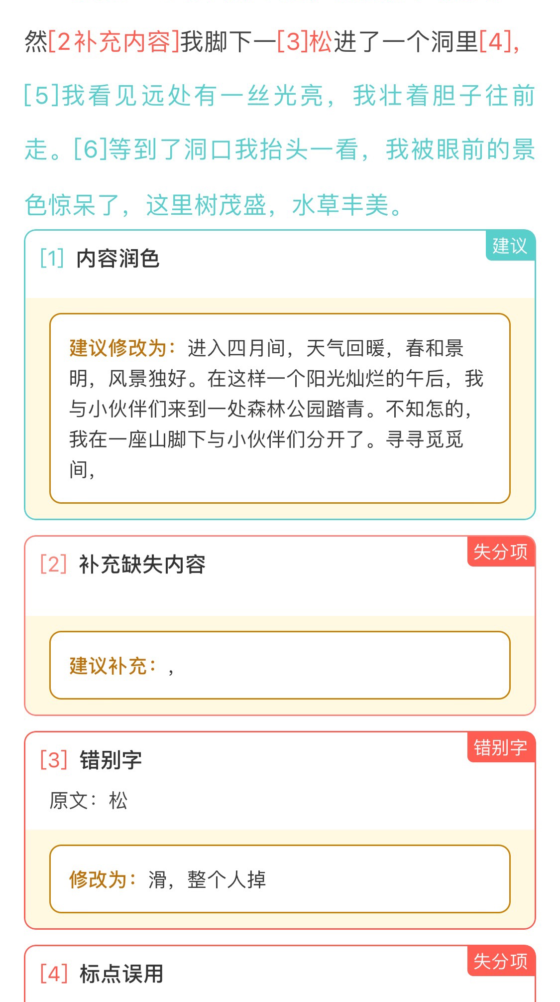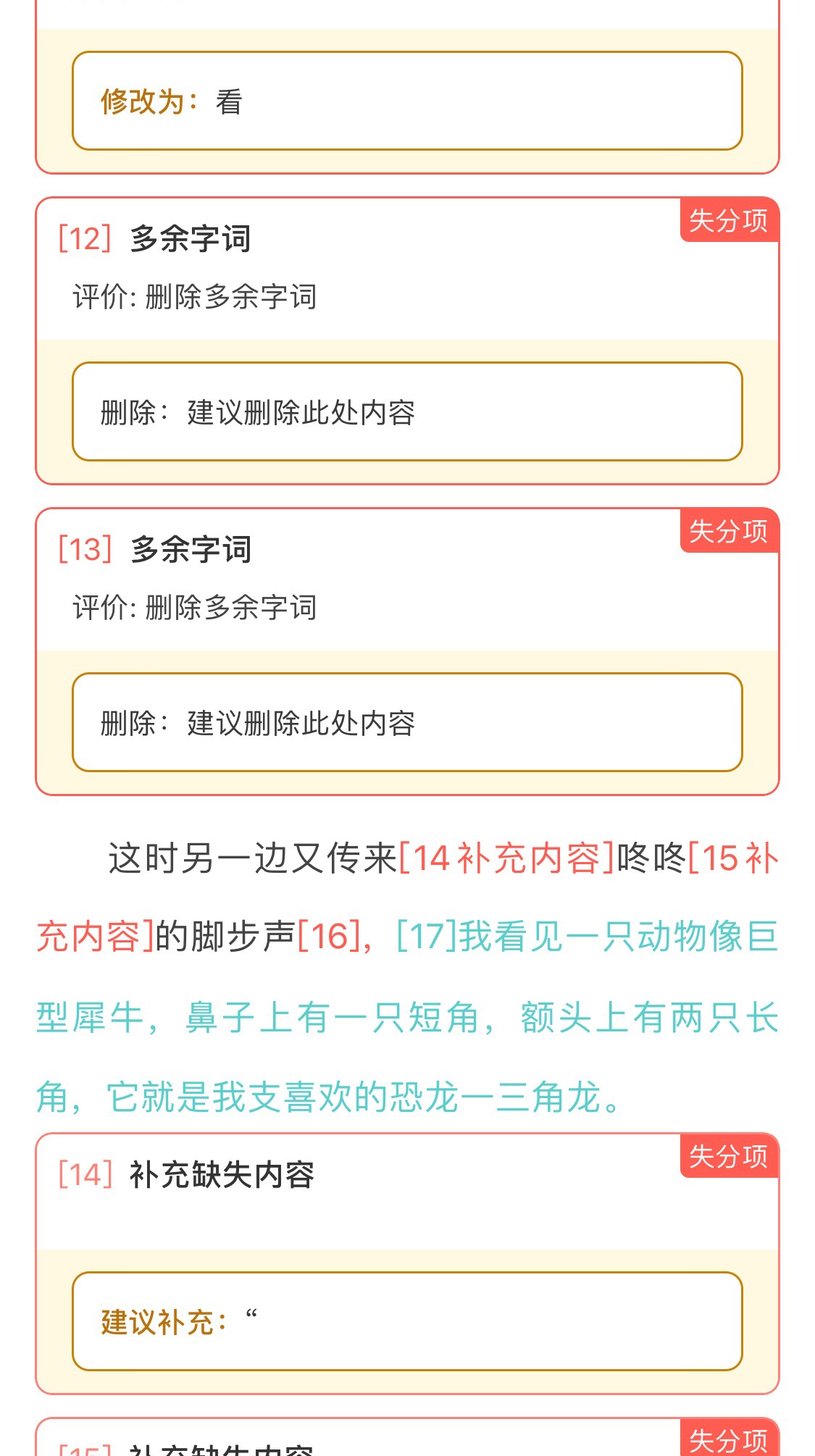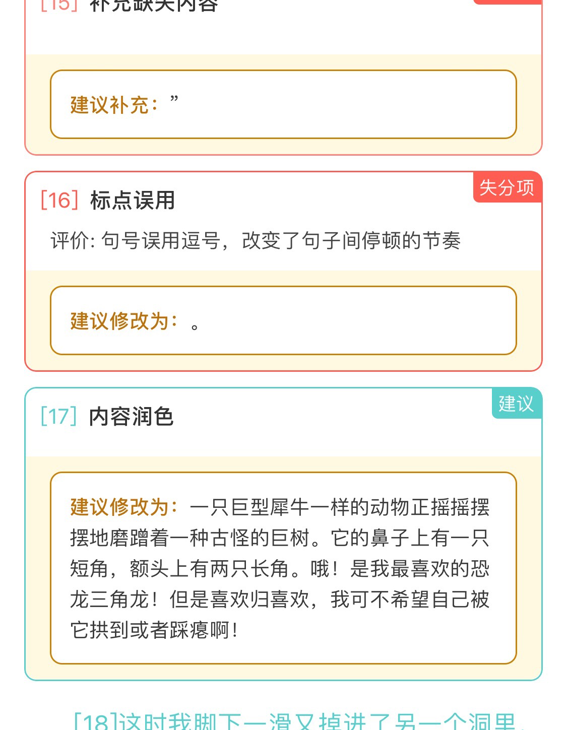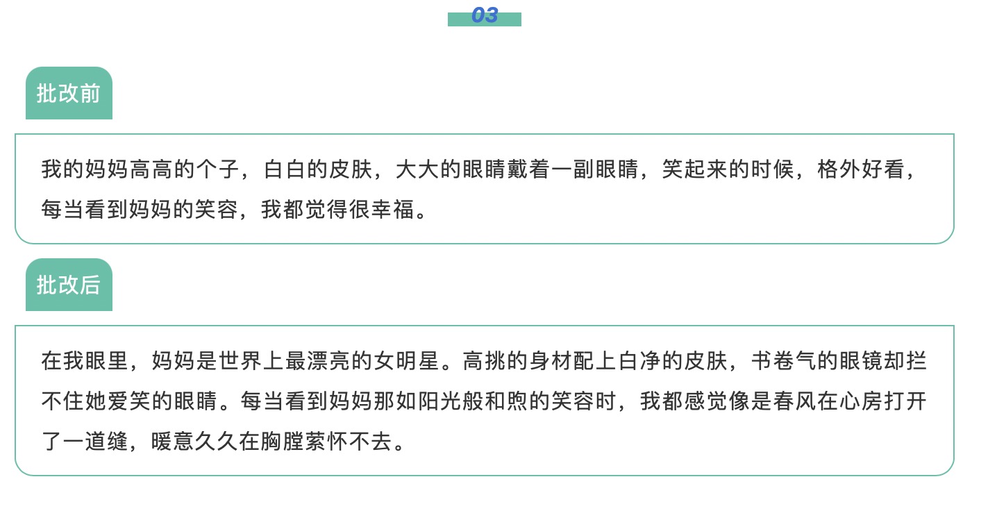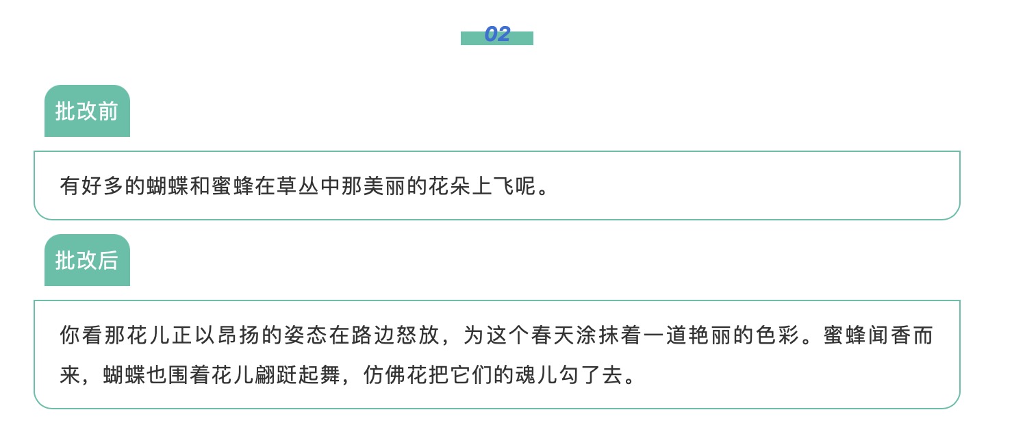 绿色部分是老师会指出孩子写作时候出现的问题,并给予修改的建议!