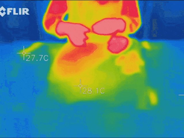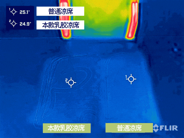 看,同样是凉席,我们在热成像仪下观察它的散热效果👇