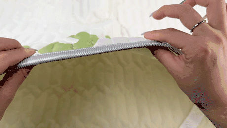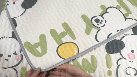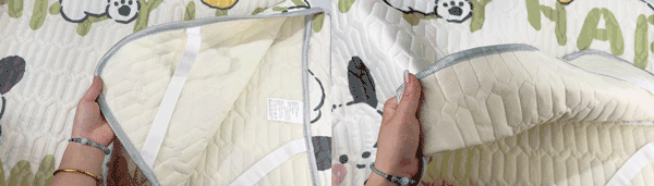 而且它底部做有防滑颗粒,还有防跑位绑带设计,躺床上随意打滚都不怕它像凉席那样随便移位。