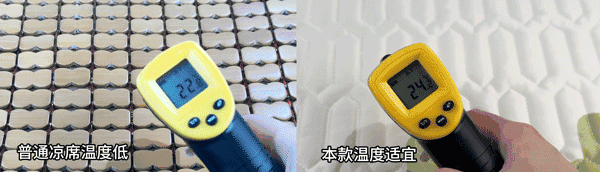 结果,这款乳胶凉席表面温度在26℃左右,而普通凉席偏低在23℃左右~.