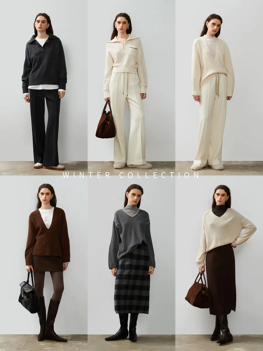 针织系列大多使用山羊绒、绵羊毛以及牦牛绒等材质