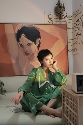 “太喜欢这个娃娃领,是少女的模样了~品质也不错,没想到睡衣也能拍照搭配,感觉自己就是女主角”