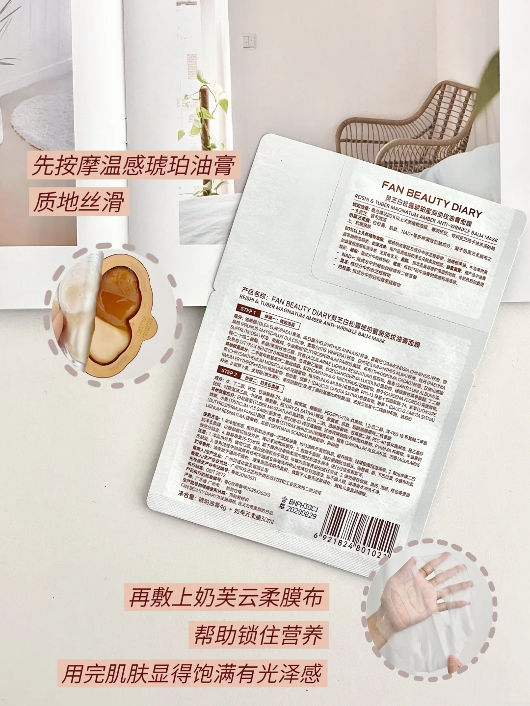 ✅先按摩温感琥珀油膏,质地丝滑,再敷上奶芙云柔膜布帮助锁住营养。整个过程伴随舒缓香氛,体验感拉满!用后肌肤显得饱满,有光泽感。