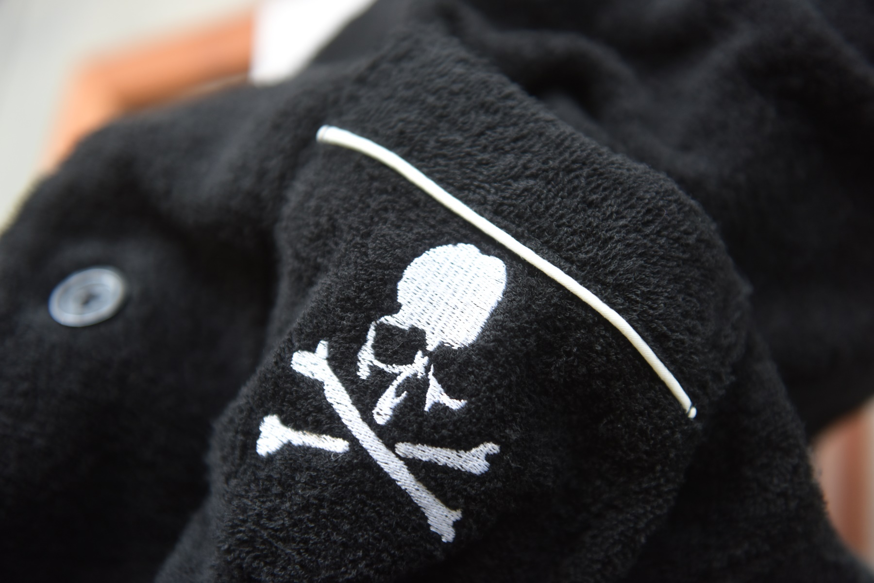 胸口一套M.M.J的骷髅刺绣 背面则是大片的M.M.J字母刺绣