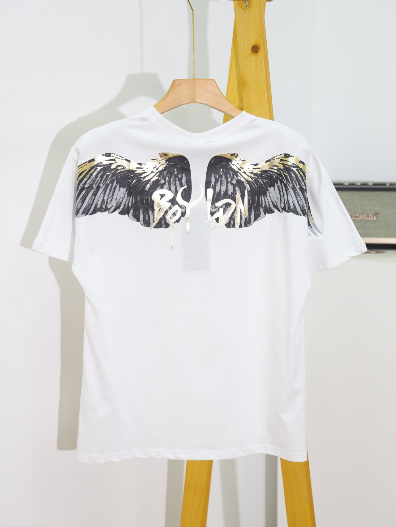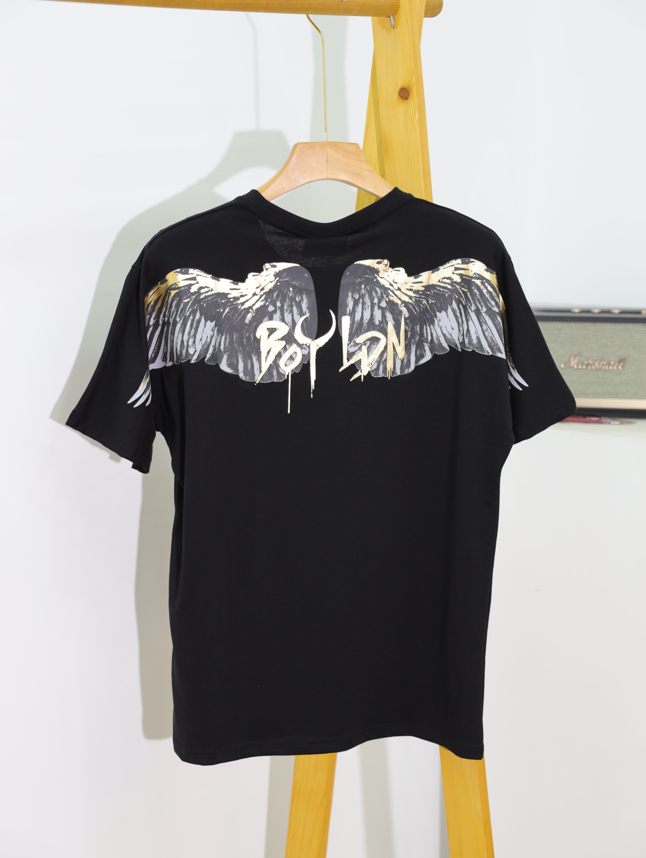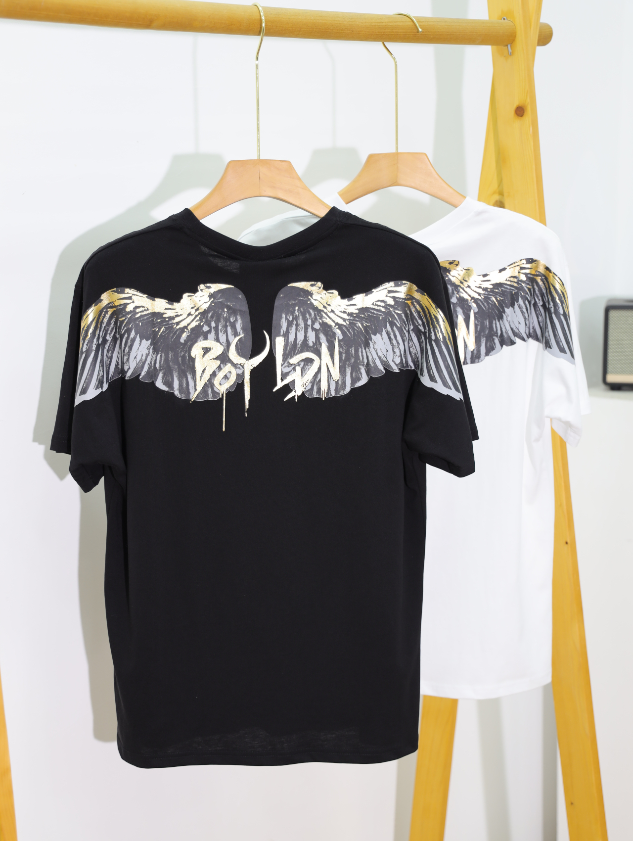 B0Y L0ND0N 21新款 水墨羽毛翅膀金色印花情侣圆领短袖T恤