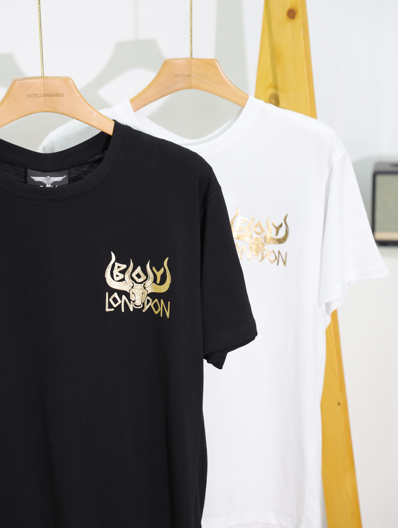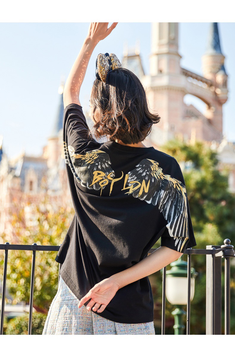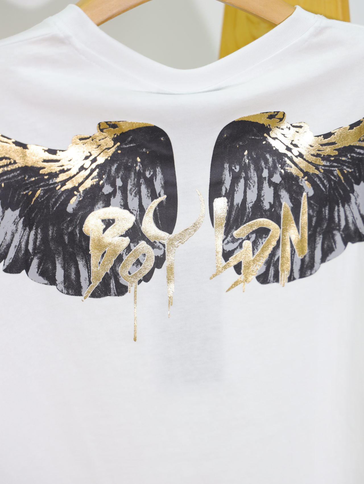 B0Y L0ND0N 21新款 水墨羽毛翅膀金色印花情侣圆领短袖T恤