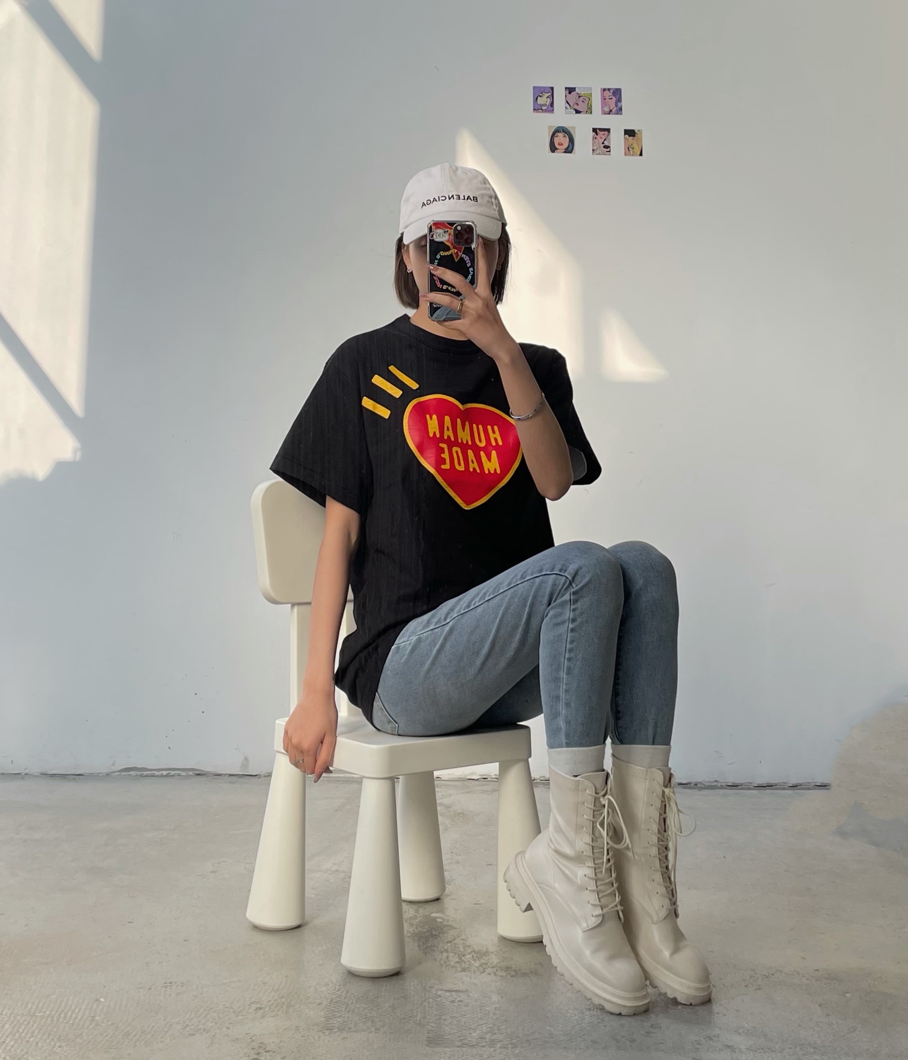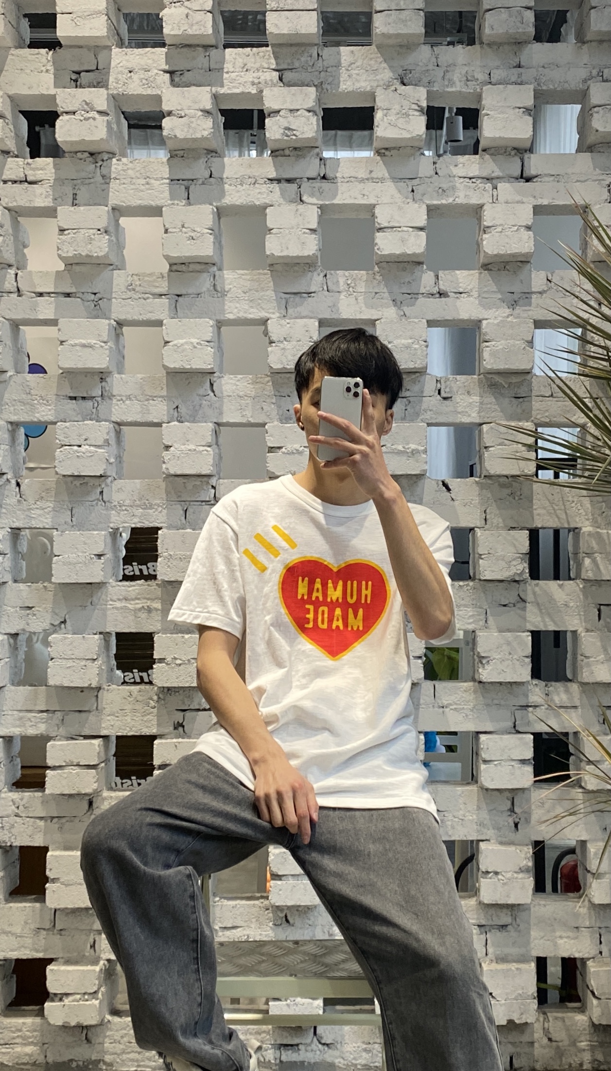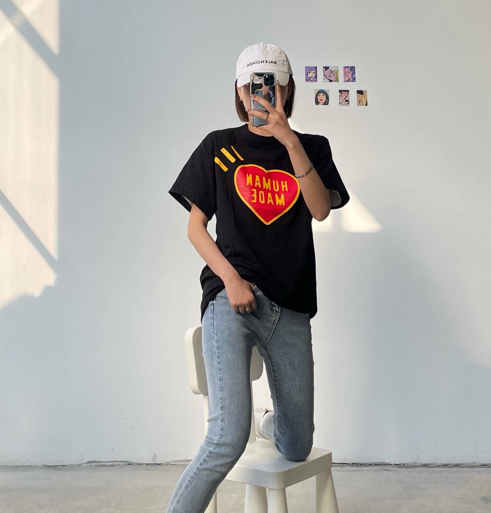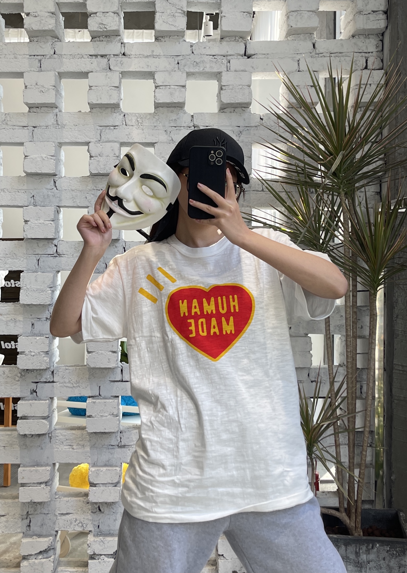 HUMAN MADE 竹节纱 手工圆筒制作 爱心圆领T恤