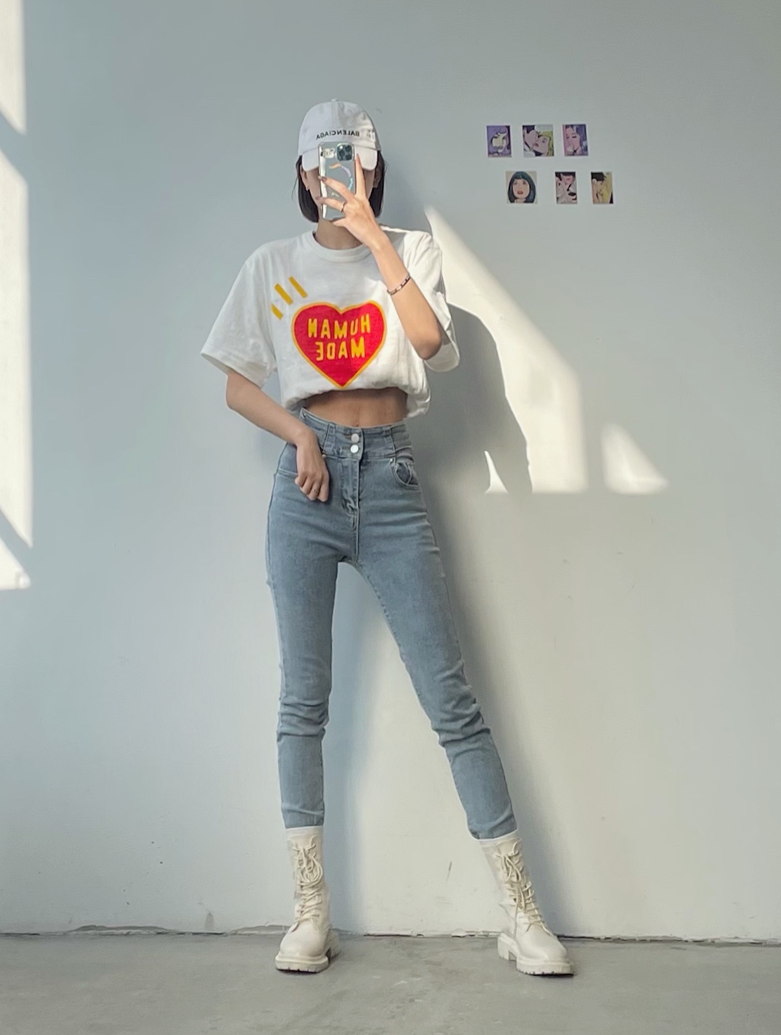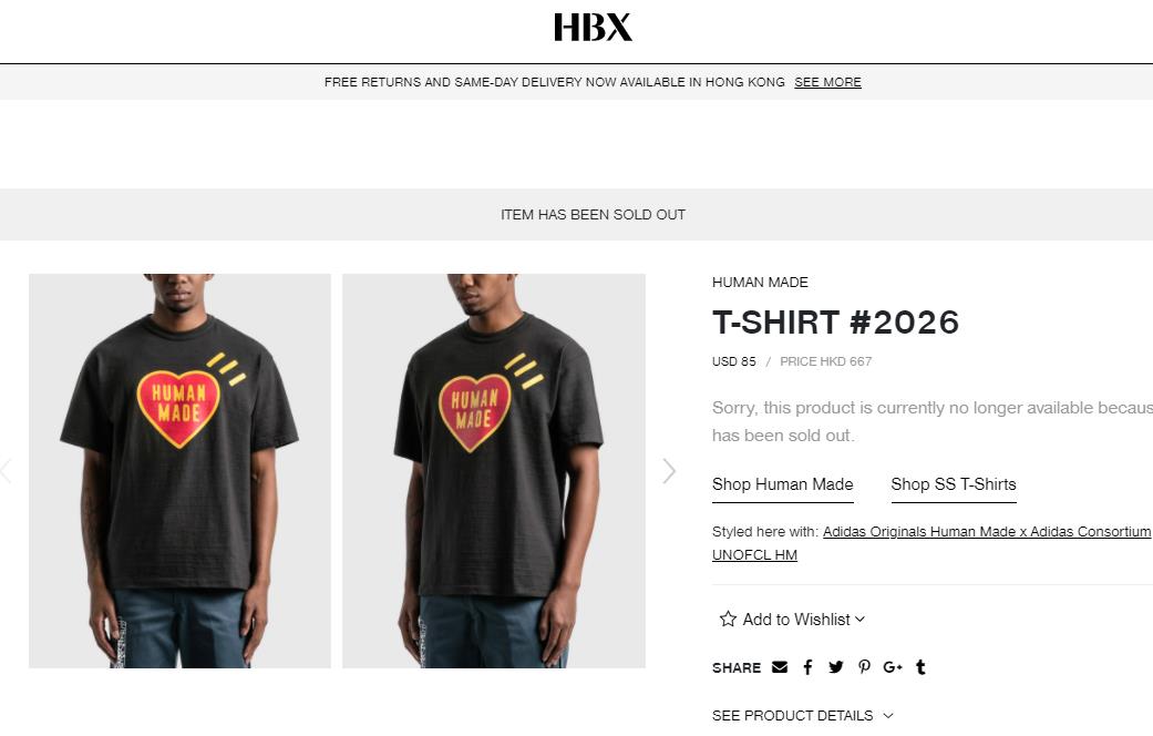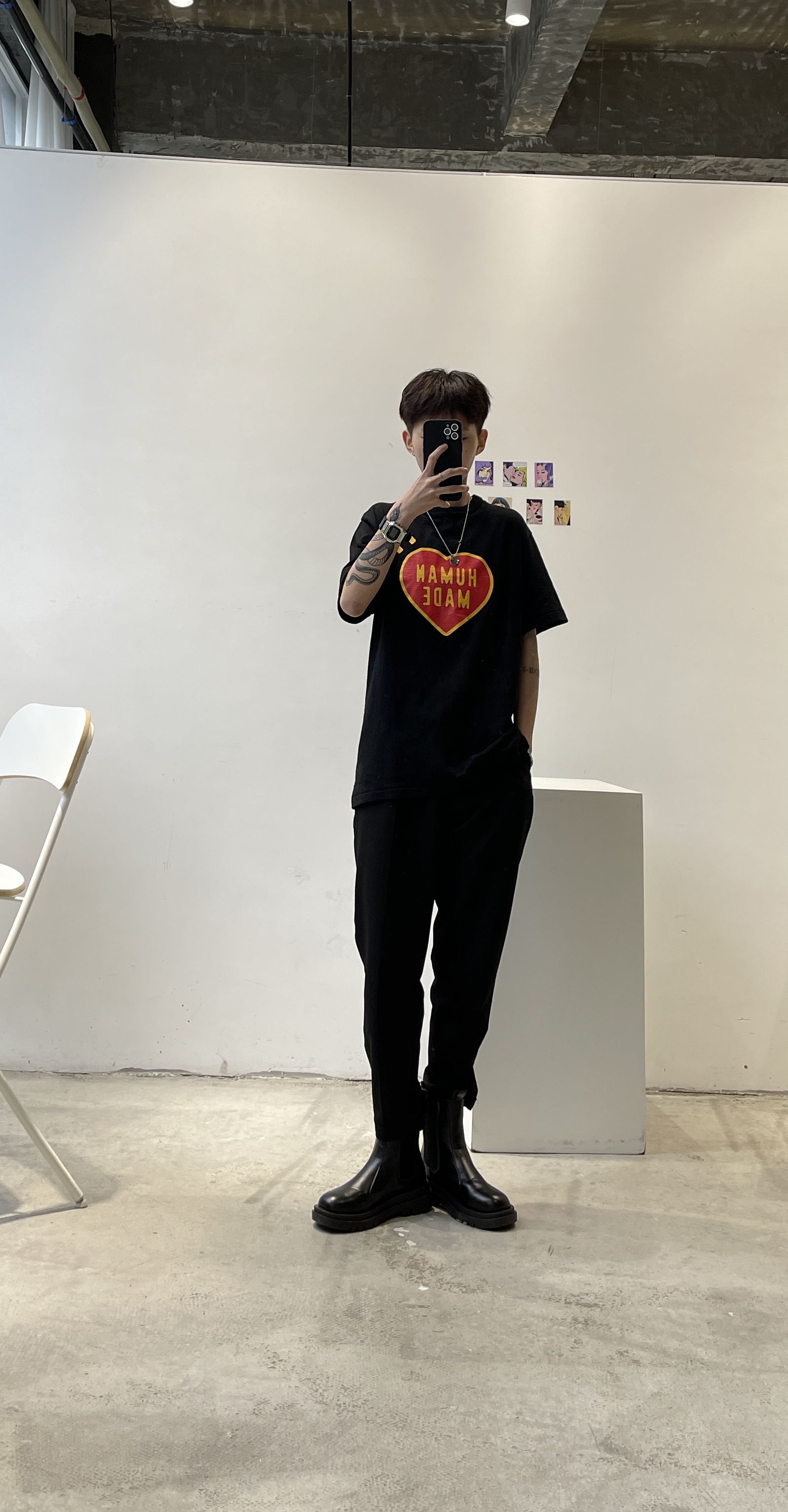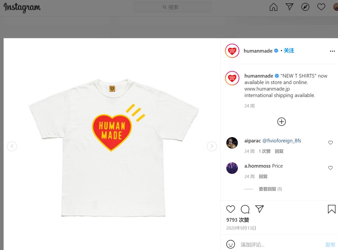 HUMAN MADE 竹节纱 手工圆筒制作 爱心圆领T恤