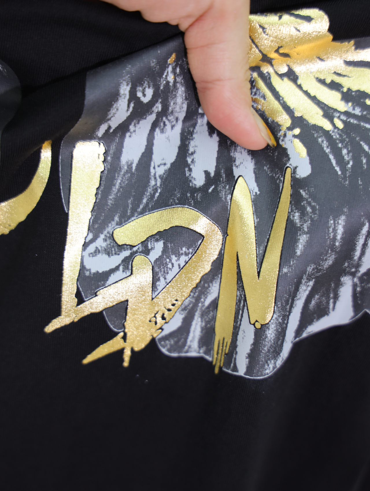200克纯棉活性面料,上身舒适亲肤,高品质进口烫金印花工艺
