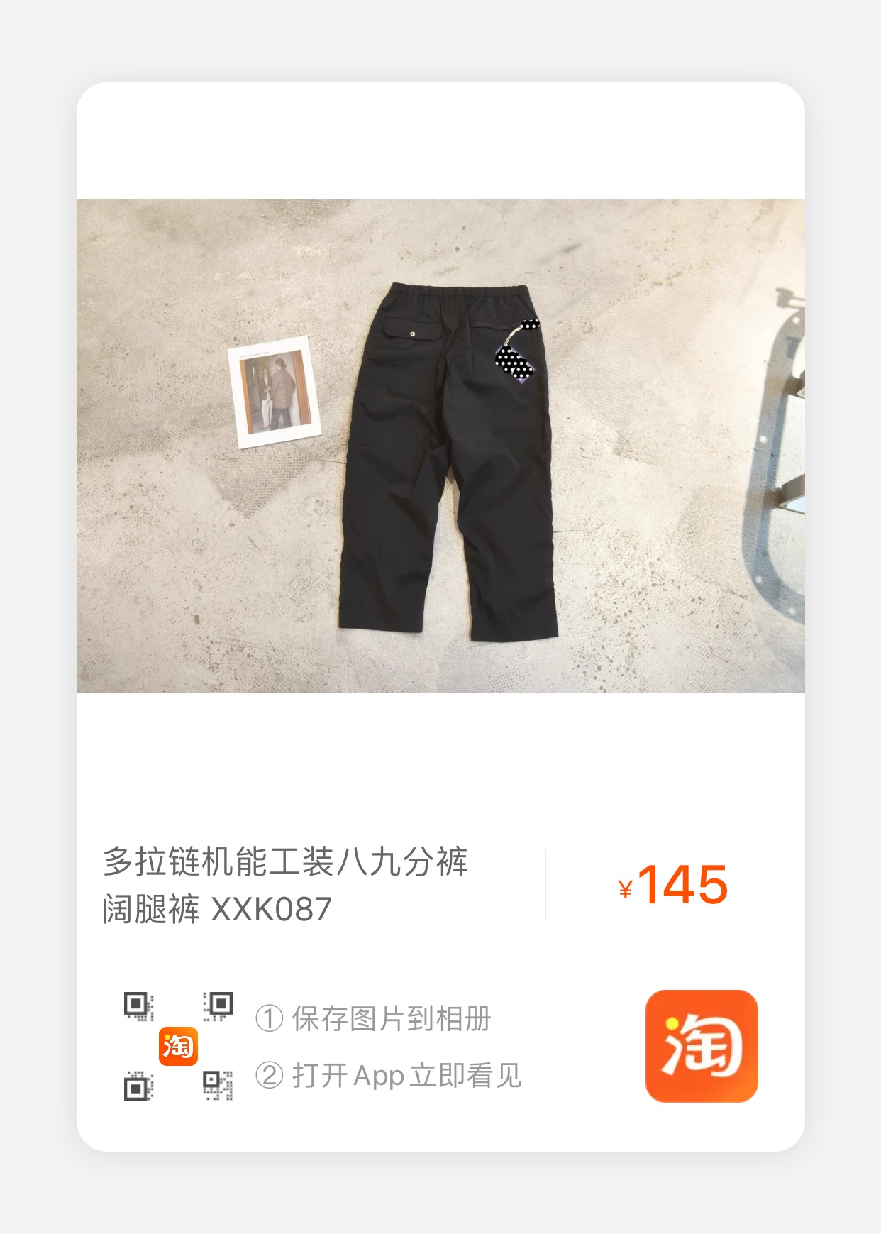 锥形的廓形,低腰宽松扩臀裁剪,3D的立体版型,九分的直口裤脚,上身效果非常赞,百搭。