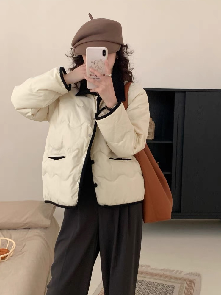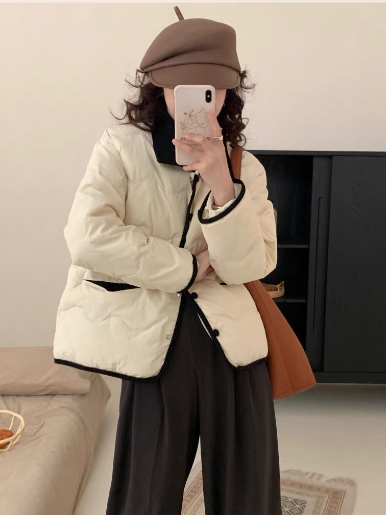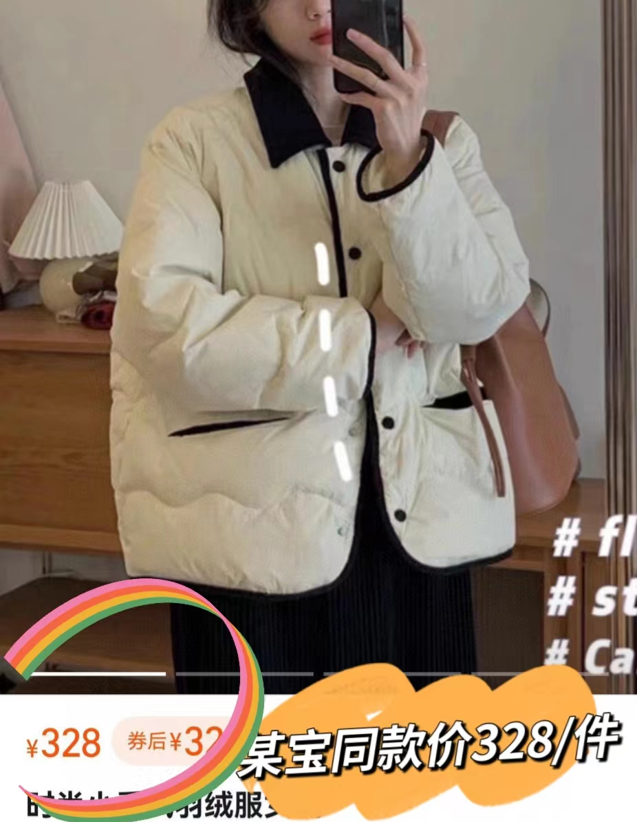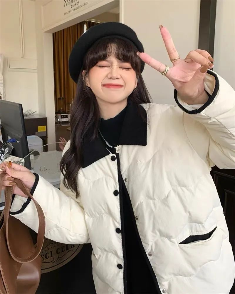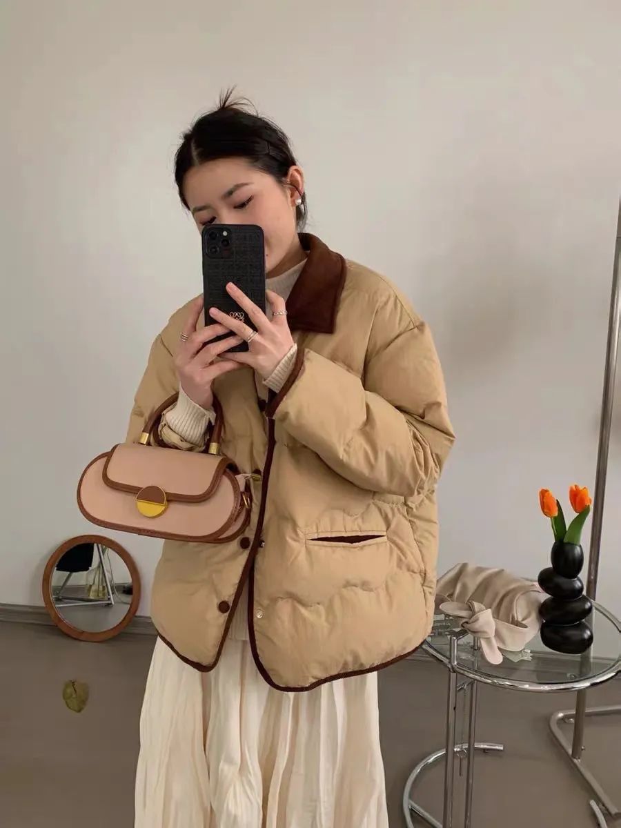 这款羽绒服是很多女性心头最爱的小香风款式,既能丰富整体的造型感,也适合各个年龄段的姐妹。