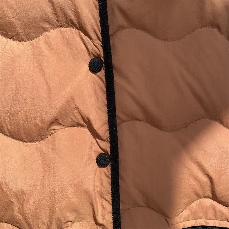外部采用水波纹的踩线设计,不跑绒不钻绒,简约不简单的小设计,立挺有型,上身名媛感。