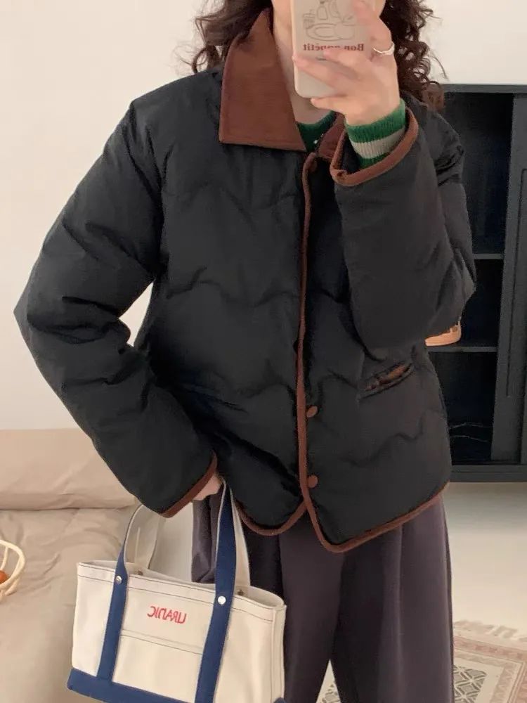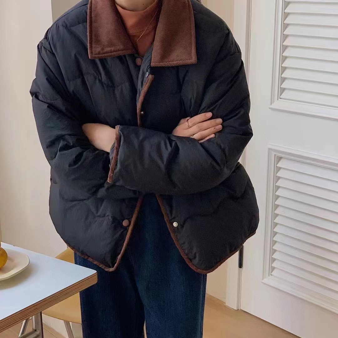 领口、袖口、衣边、口袋上方都点缀了灯芯绒撞色包边,细节满满,百搭又显气质,更有休闲通勤的高级氛围感。