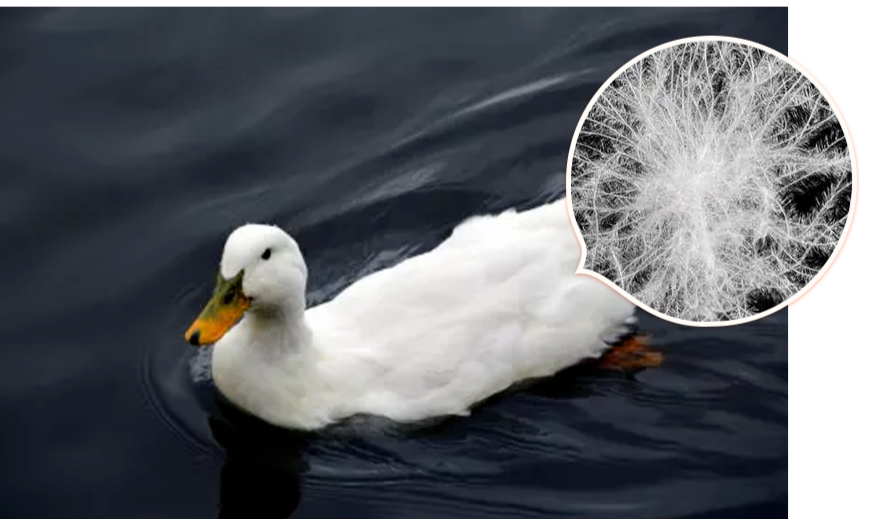 羽绒是星朵状结构,每根绒丝有数不清的微小孔隙,蓄住大量静止空气,形成了非常能打的保暖力!