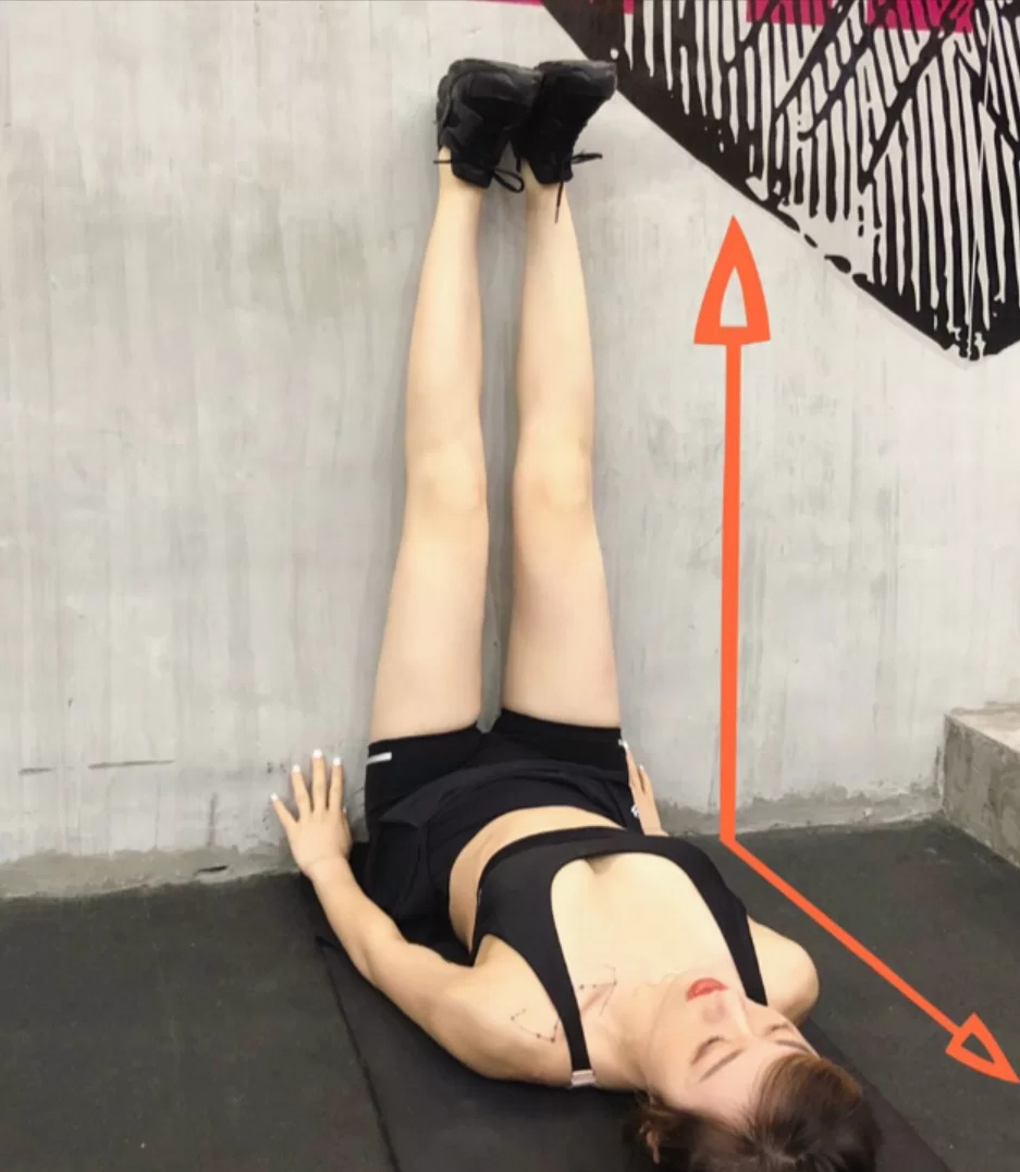 面对墙壁站立-脚在前一脚在后脚尖冲前将前脚脚尖压在墙面身体前倾充分感受小腿后侧肌群的拉伸感保持1分钟记得换边~