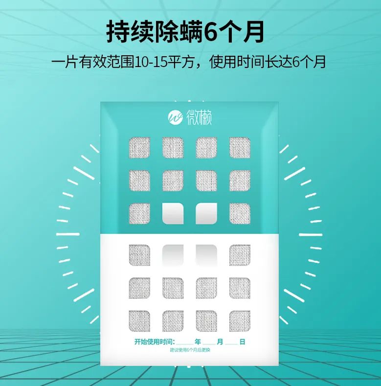 经品牌实验数据得知,一片微懒捕螨卡有效捕螨范围大概为10-15平方米;