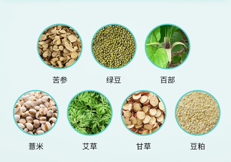 捕螨卡的核心成分主要是苦参、绿豆、百部、薏米、艾草、甘草、豆粕;