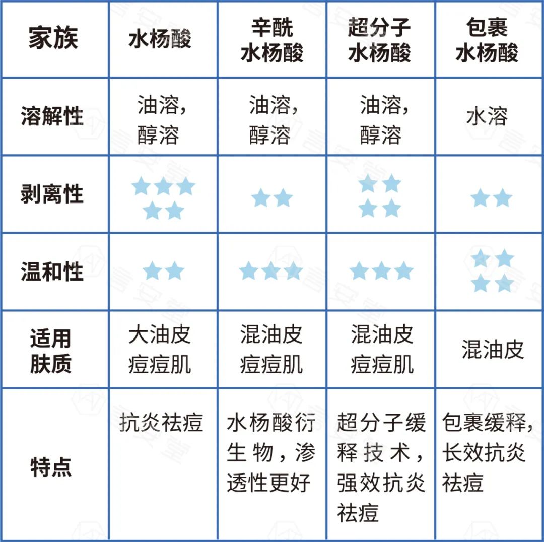敲个黑板! 总的来说,水杨酸比较适合“油痘肌炎症肌”皮肤问题改善; 果酸可以渗透皮肤更深层,刺激胶原蛋白新生,所以更适合嫩肤抗老需求。