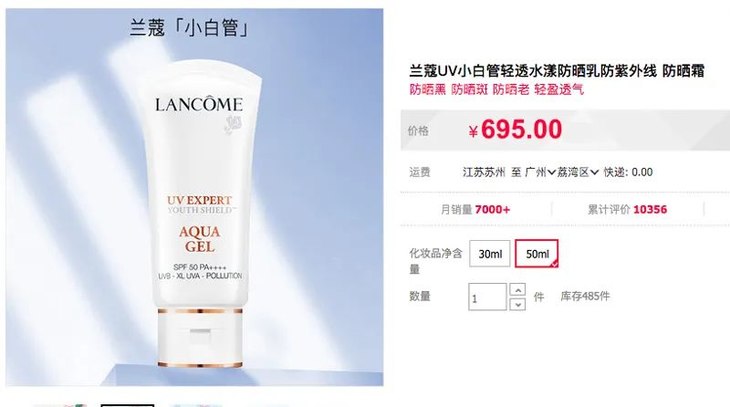 借用这位姐妹的话来说就是: “除了贵,没毛病的防晒” 。官网价50ml卖到695元,30ml都要480元,直接劝退很多心动的姐妹。