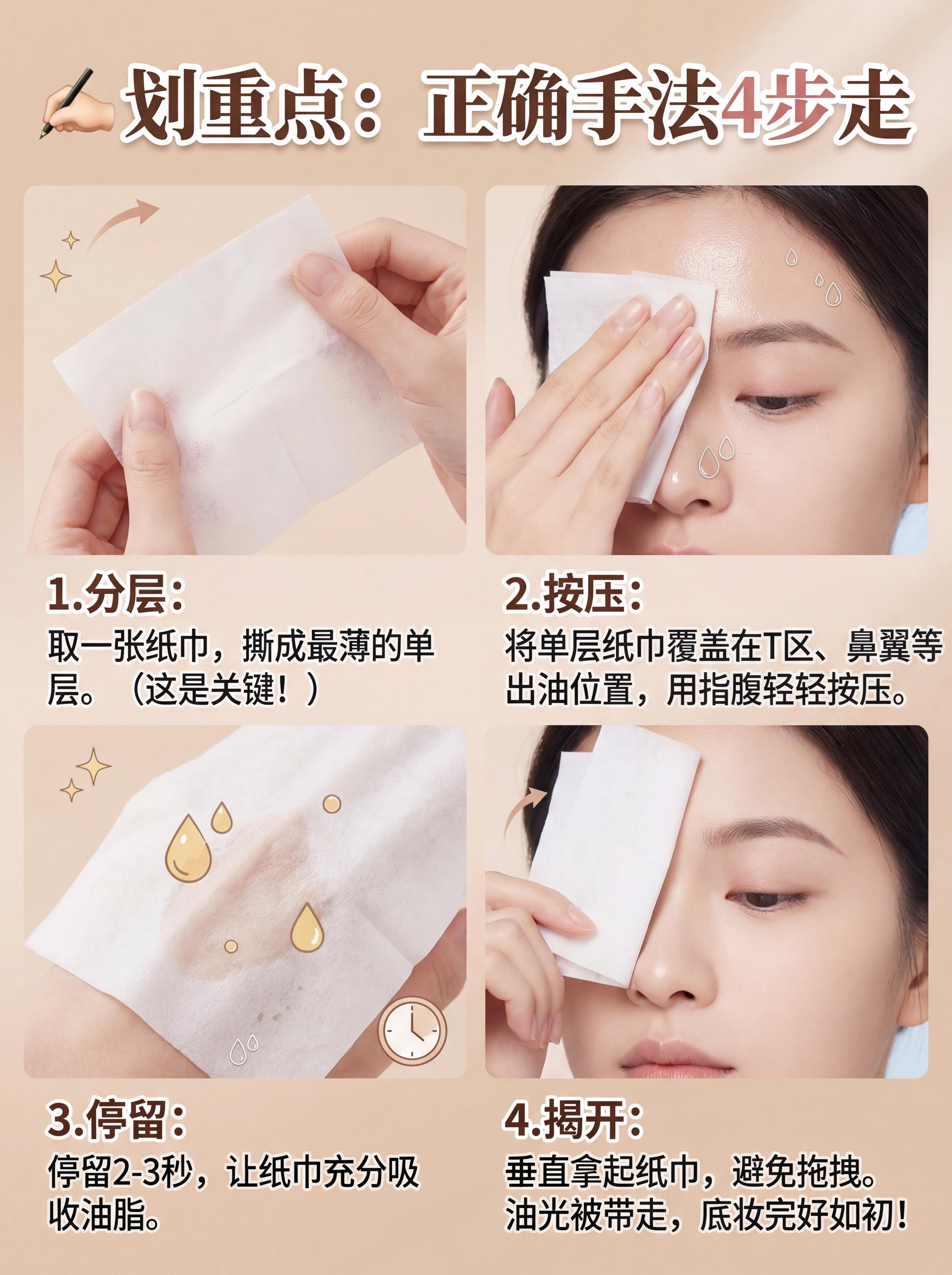 2️⃣ 💡关键一步:把纸巾分成最薄的单层!单层的吸附力刚刚好,不会过度带走皮肤水分