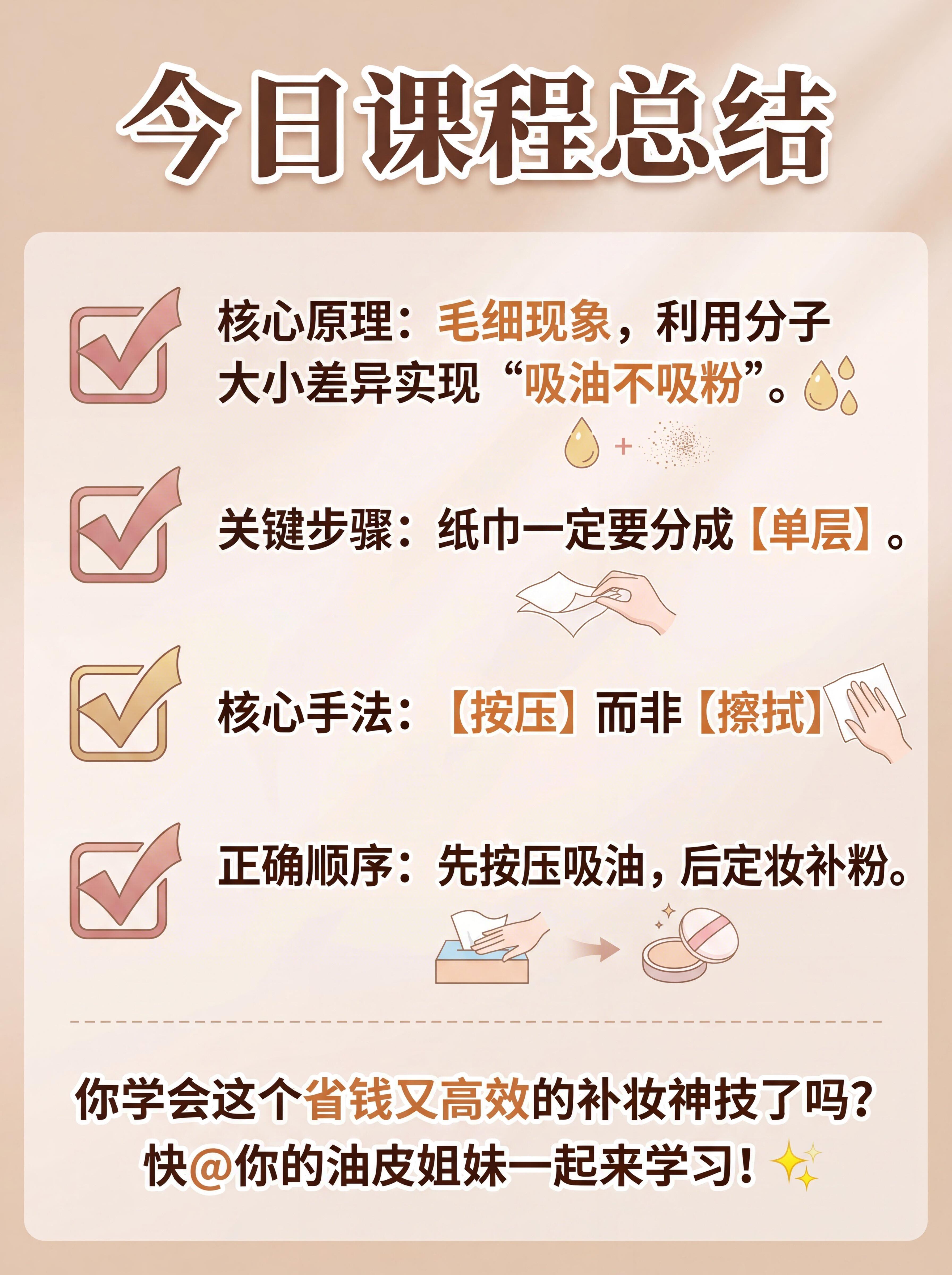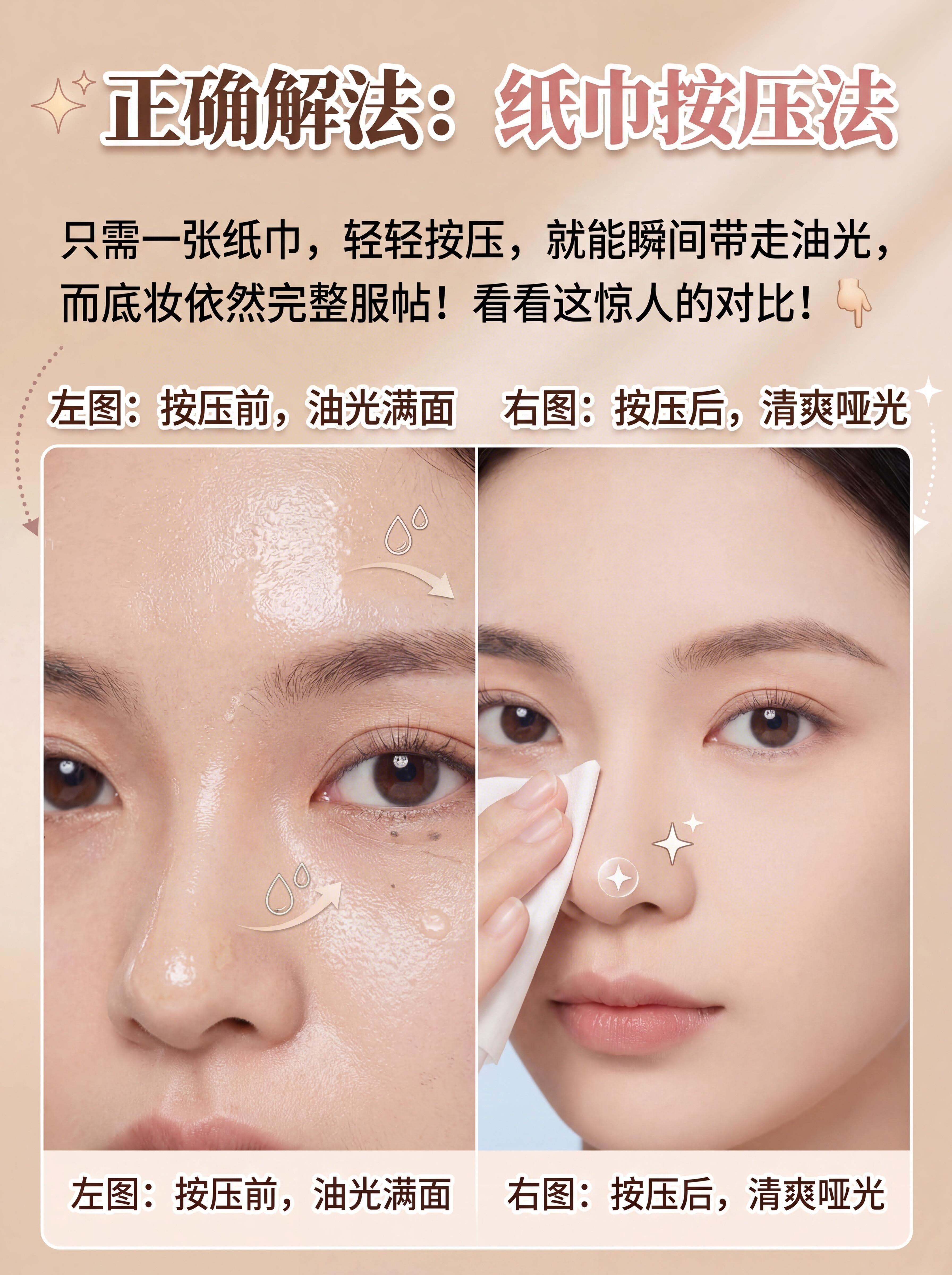 今天就来给你们上一堂硬核美妆科普课,揭秘【纸巾按压补妆法】的底层逻辑:为什么它能做到神奇的“吸油不吸粉”!