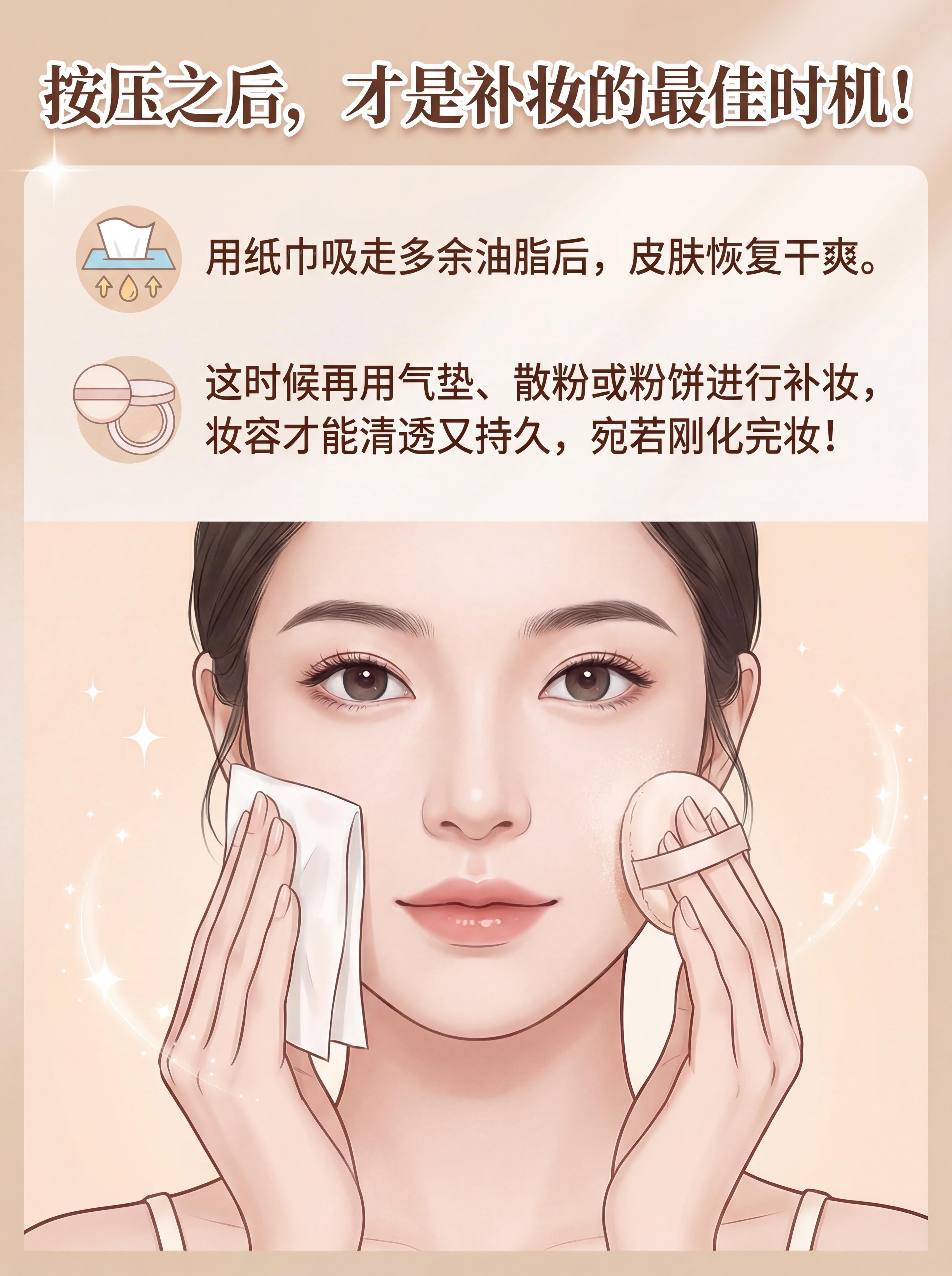 下次补妆前先“按”一下,告别斑驳底妆👋
