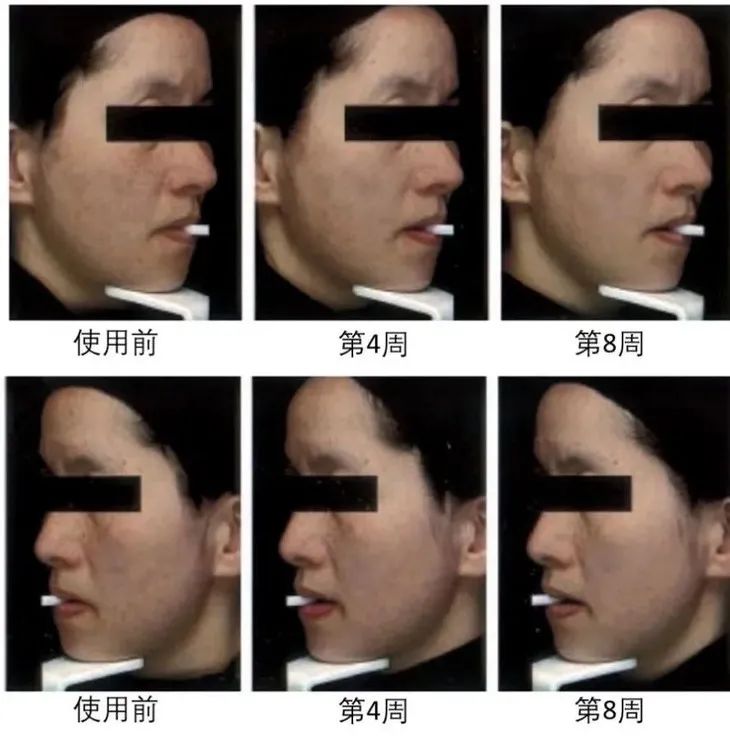 连续使用8周烟酰胺的变化 图片来源:Hakozaki,2002