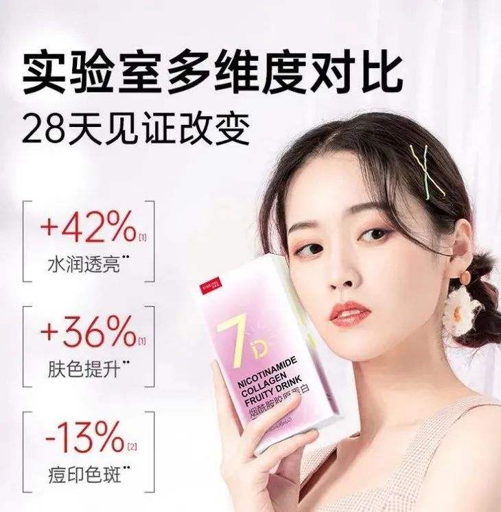 2 | 7步美白法,全链路击退黑色素,实验数据见证肌肤改变,口服烟酰胺可作用肌肤真皮层,敏感肌肤也不怕; |
