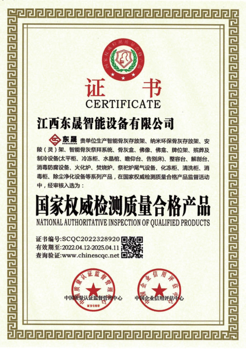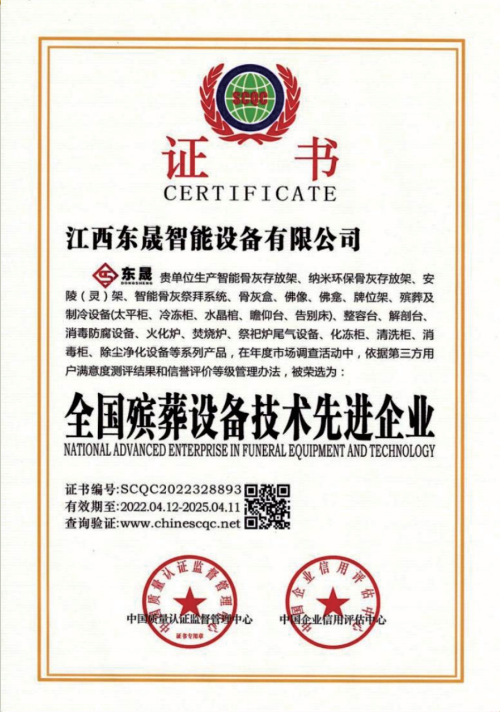 公司厂区占地面积65000平方米,厂房建筑面积39900平方米,综合办公、研发大楼建筑面积6000平方米,现代化展厅3000平方米,已投资固定资产近1亿元;主要产品有:智能环保火化炉、焚烧炉、骨灰存放架(智能型存放架)、冰棺(太平柜、瞻仰台)、AGV无人导航车、空气净化、医学解剖室、网络祭奠服务、万佛墙、骨灰盒、牌位、牌位架等500余个系列品种;公司先后通过ISO9001质量管理体系、ISO14001环境管理体系认证等,已建成国内最先进的殡葬设备制造智能化自动生产线,拥有整套人机集成控制的生产安装、质量检测系统。是目前行业内一家集设计制造、产品研发、生产销售、运行维护为一体的大型现代化殡葬设备供应商,也是目前国内真正实现智慧殡葬软硬件、全系列的一站式供应商。