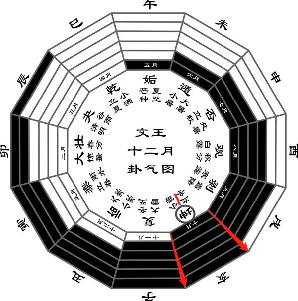我们现有的认知多是以温度计或天气预报的气温作为冷暖寒凉的标准。只是忽略了在这表面温度的内在,还有一个天地之气的运行法则。这个法则,可以从二十四节气相应的“十二消息卦图”看到阴阳二气的变化(图中黑色表阴,白色表阳)。
