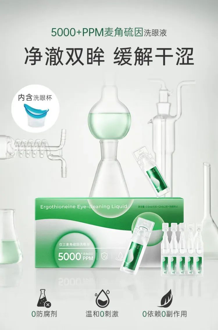 那么如何选择一种温和有效的方式进行眼部的抗氧化呢?这里我们向大家推荐一款口碑爆棚的产品——仅三麦角硫因洗眼液,添加5000+PPM麦角硫因,0刺激0防腐剂0药物成分,温和入眼不刺激。