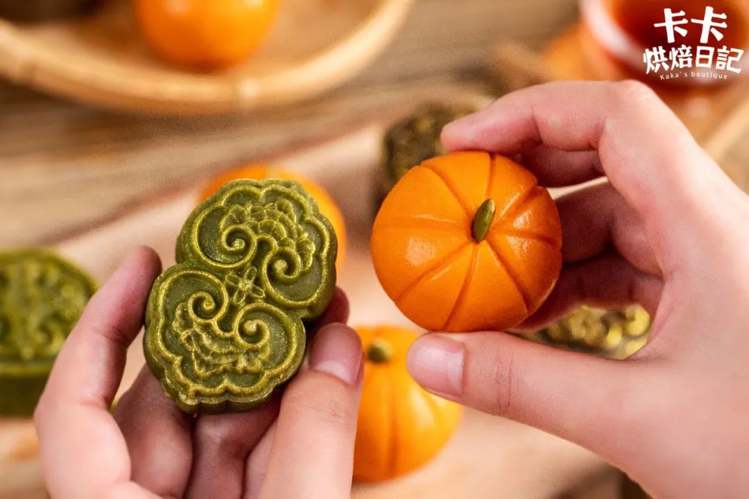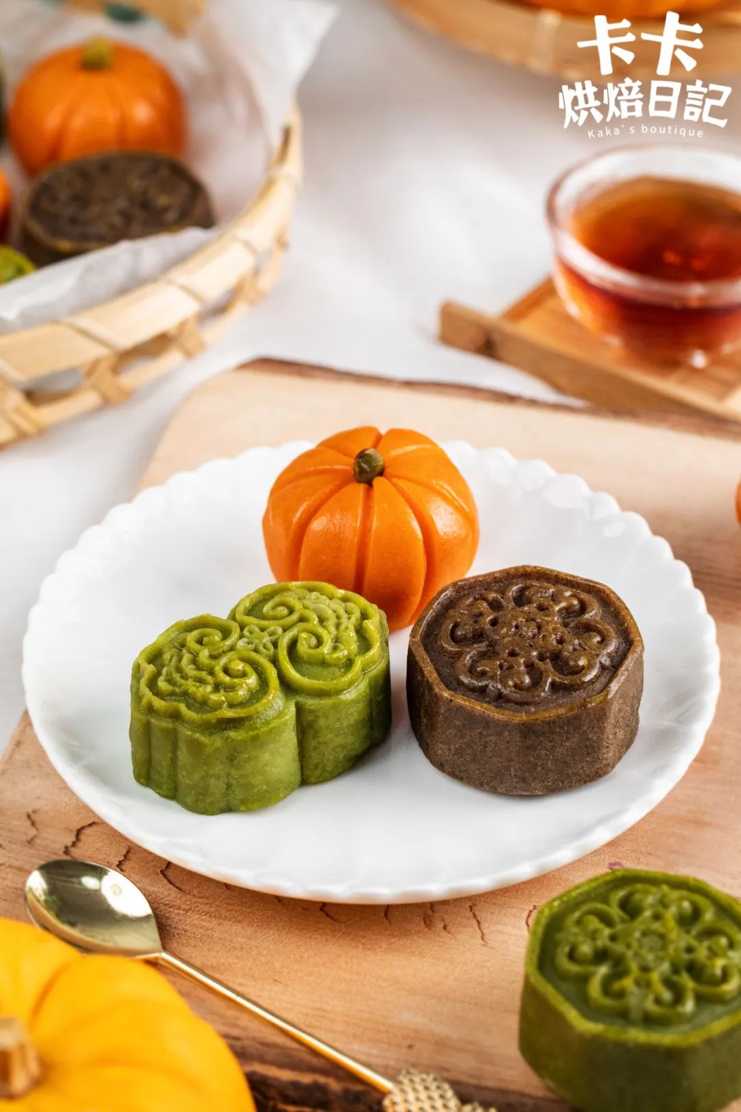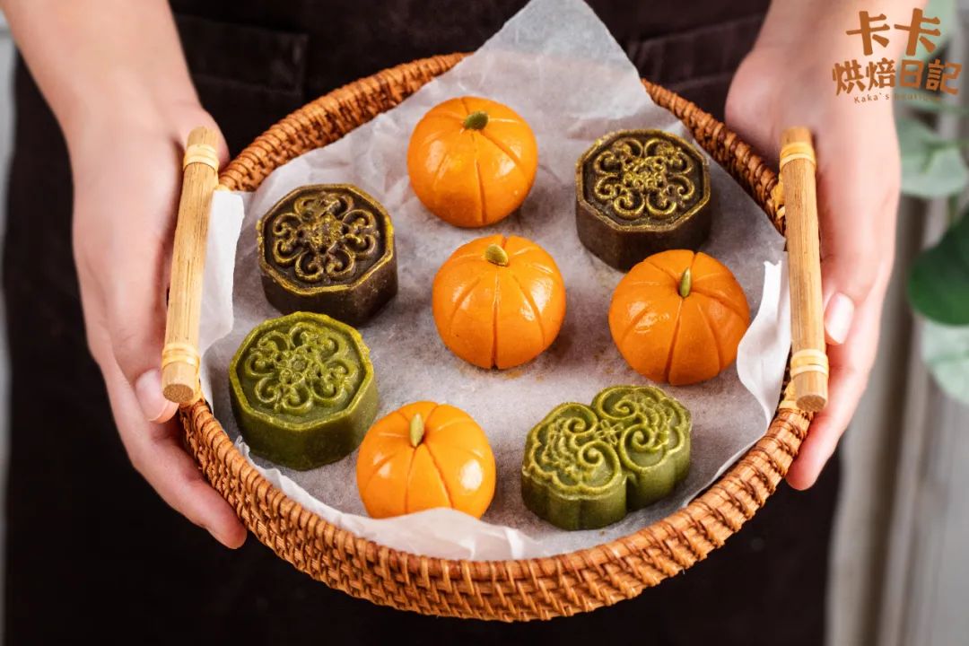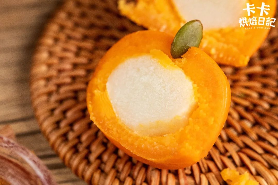 ♢ 南瓜奶黄拉丝桃山皮月饼