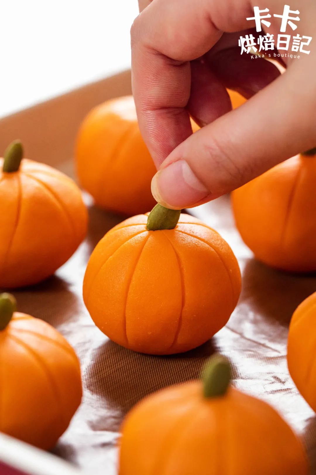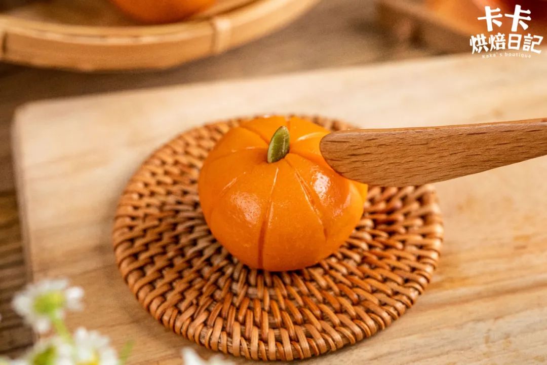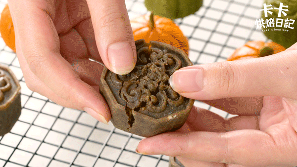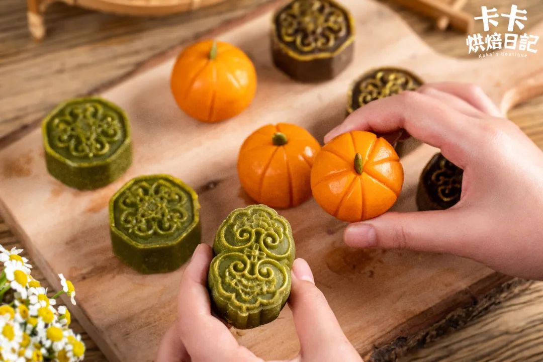 ♢ 南瓜奶黄拉丝桃山皮月饼