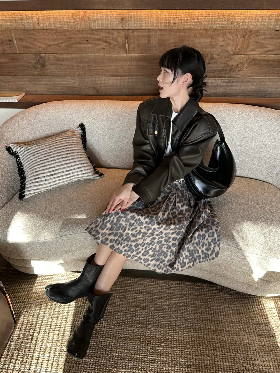 新品上身 | 皮革夹克穿搭💞混搭豹纹半裙有千禧味儿!