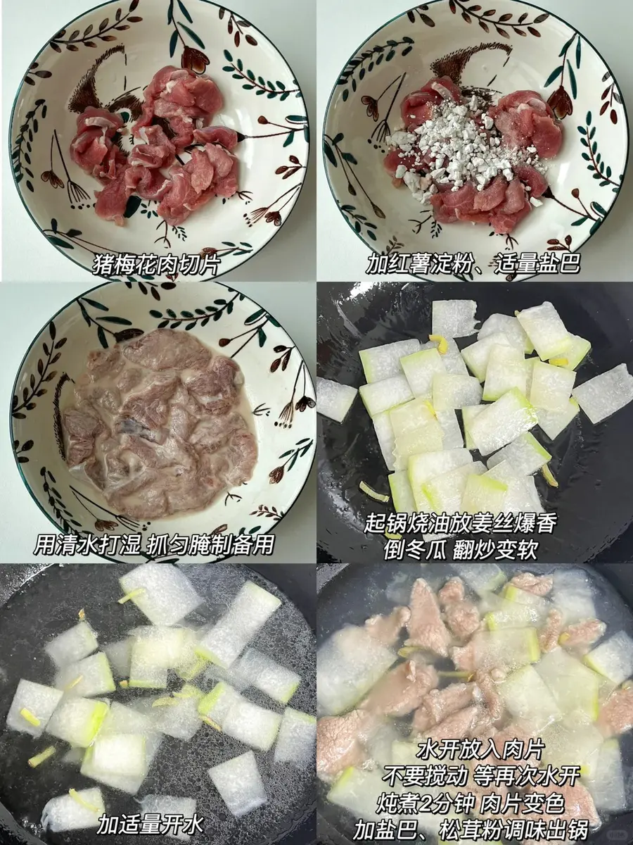 猪瘦肉片、红薯淀粉、冬瓜