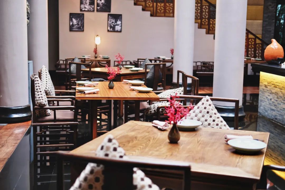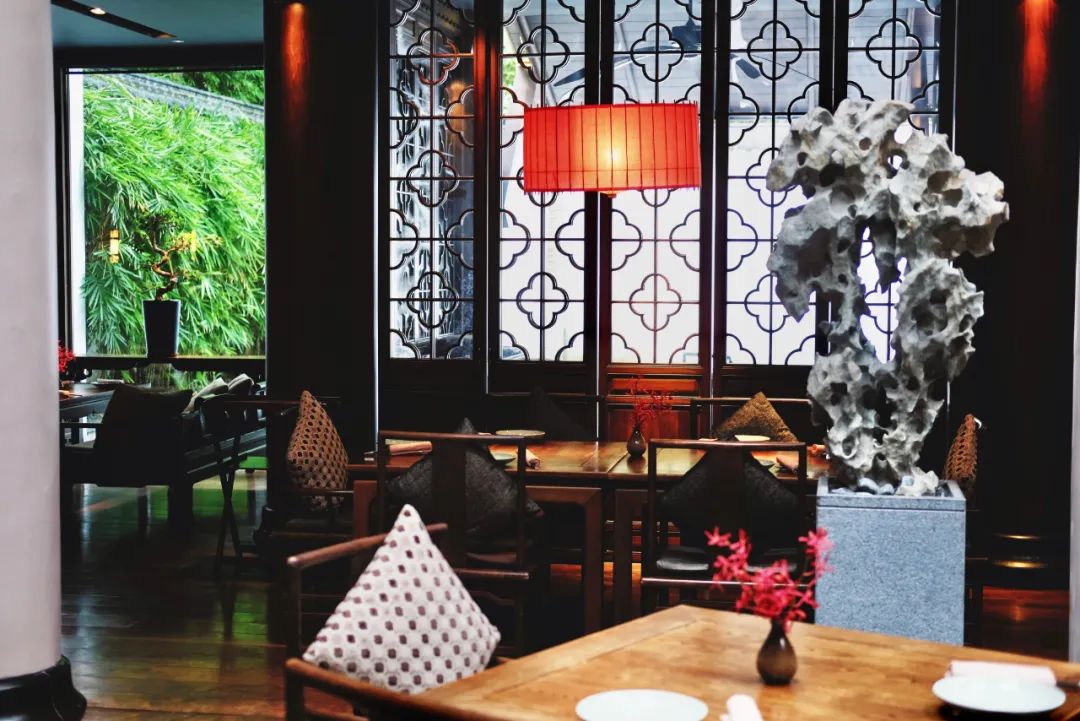 吃过的当中酒店君极力推荐中餐厅“茶苑”🍵,人均350元,小贵但味值!这里更像一座古典大宅,窗外有松柏花园,室内有假山雅座,加上红灯,百分百复原江南风!