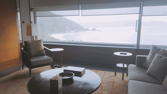 由于暴雨,酒店君决定对自己好一点,奢侈了一把将客房升级至拥有270°海景的套房。