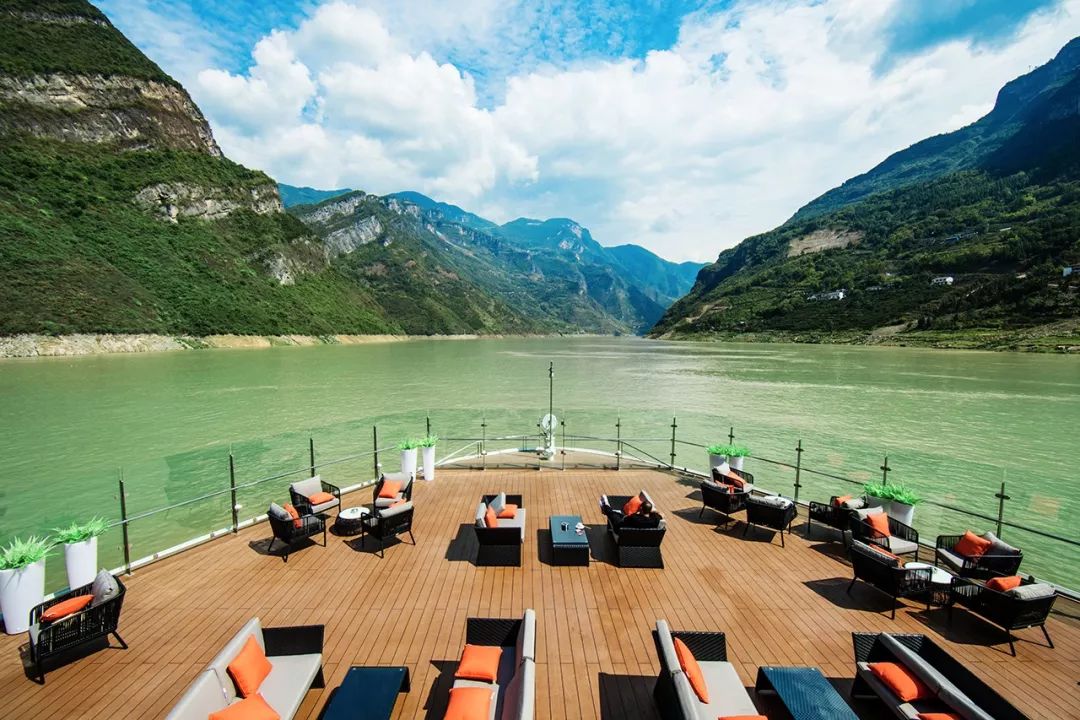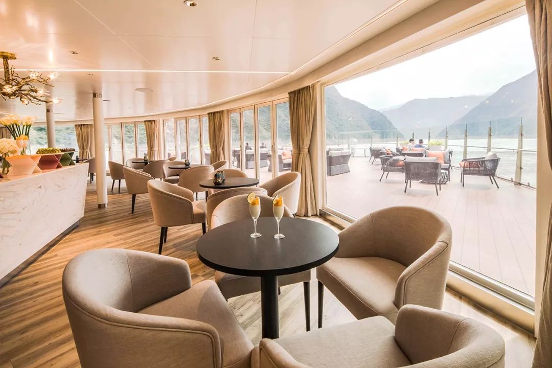 荣耀俱乐部,位于船头的观景吧,这里将是你与家人朋友酌酒、聊天、一览长江盛景的好地方。
