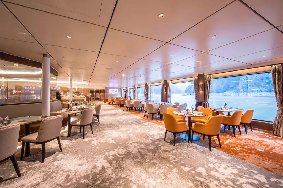走进敞亮的双层环球餐厅,来到帕沃利昂餐厅,随缓行的游轮,两岸移动的风光映入眼帘,用餐也变得格外有趣。
