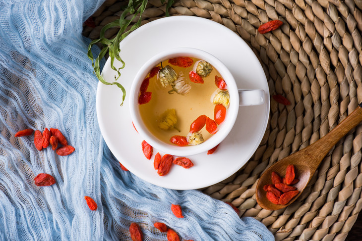 2、泡茶饮,枸杞比较百搭,可以与各类药食搭配泡茶饮用,建议喝完茶饮后,把枸杞也吃掉。常见搭配:枸杞菊花茶、枸杞黄芪茶、枸杞山楂红枣茶等。