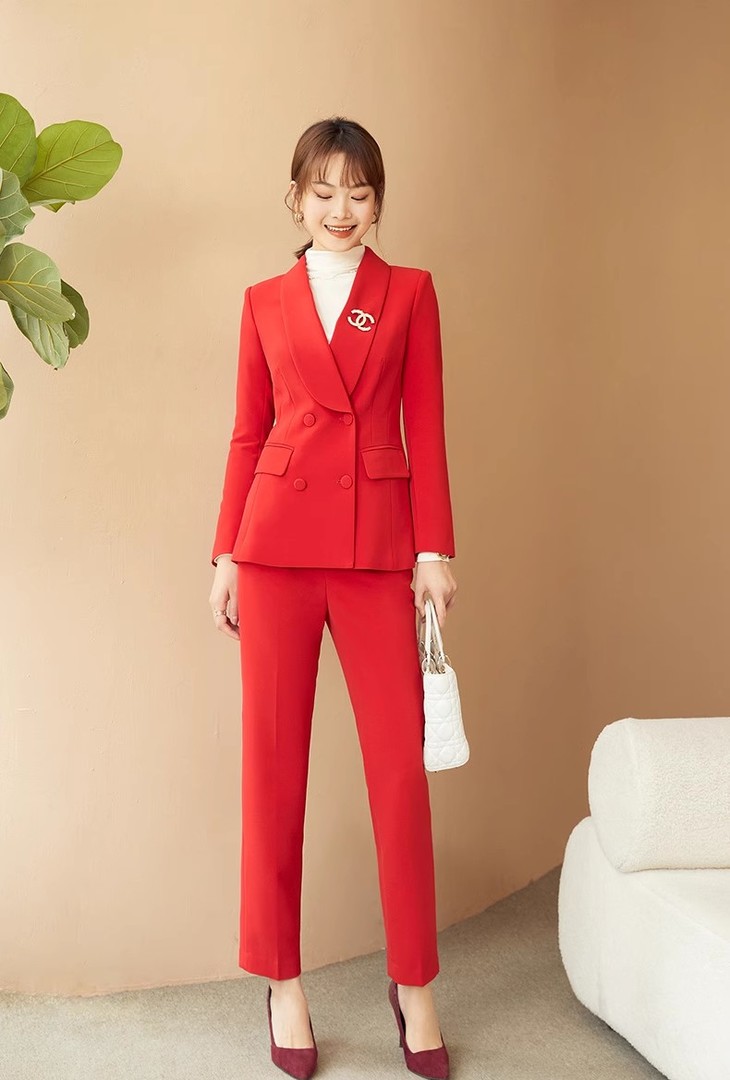 当红色与严谨的职业套装结合,产生了一种奇妙的化学反应。那冷艳的气息,如同盛开的红玫瑰,独立而高雅,为工作环境注入了一股新的生命力。同时,那炽热的气息,犹如初升的太阳,温暖而热情,让人们感受到工作的乐趣和挑战
