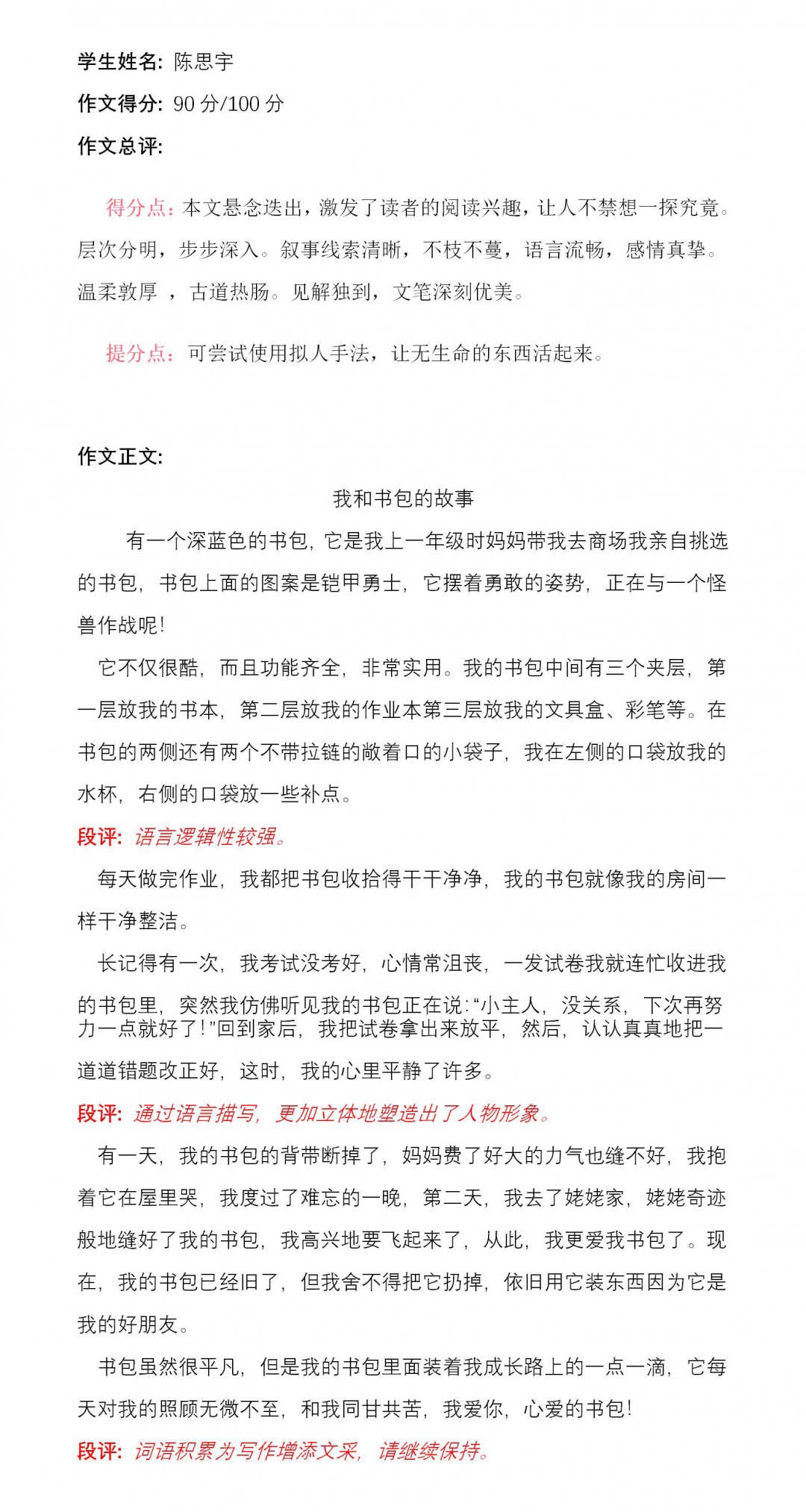 思宇是个聪明活泼,热情开朗的孩子,吸收知识和接受新事物都比较快。你的观察能力和思考能力也特别强,特别喜欢提问题,对好多问题都有自己独特的看法和理解。要记住,世上无难事,只怕有心人。努力,再努力,为实现梦想努力!