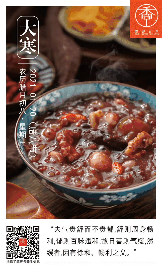 大寒是冬季的末尾,在饮食方面宜遵从“ 省甘增咸以养肾气”和“宜减甘增苦,补心助肺,调理肾脏”。也可以适当增添一些疏通气机的食物,做准备。