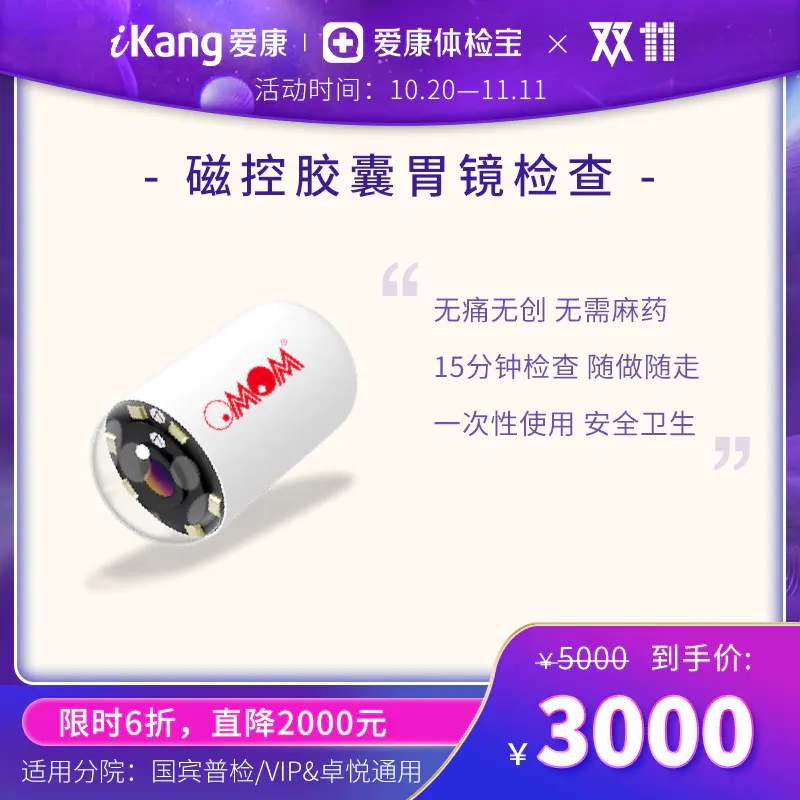 磁控胶囊胃镜检查原价 5000 元 ,双11活动价 3000 元!
