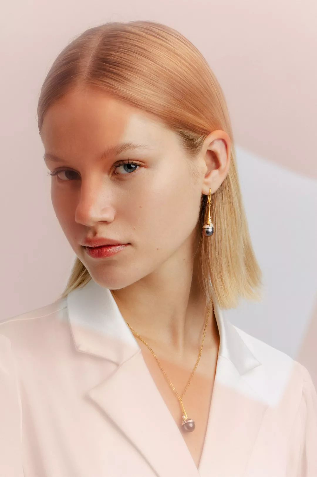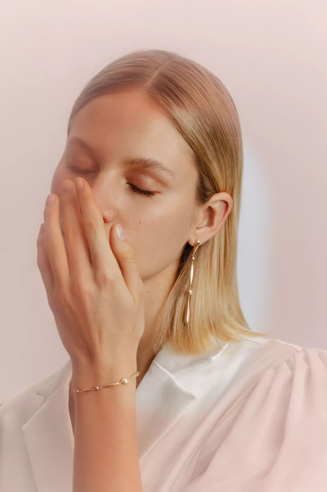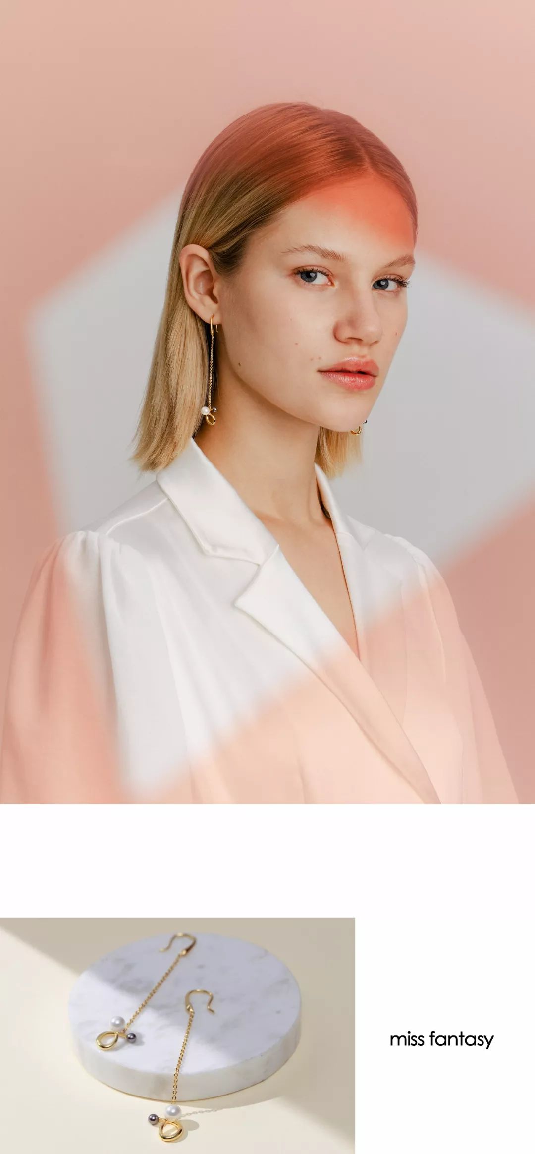 幻彩灰与白色的珍珠重构,这些耳环以悠长的线条感,在你耳边摇曳生姿。偷偷补充一点,长耳环在视觉上有瘦脸作用哟~