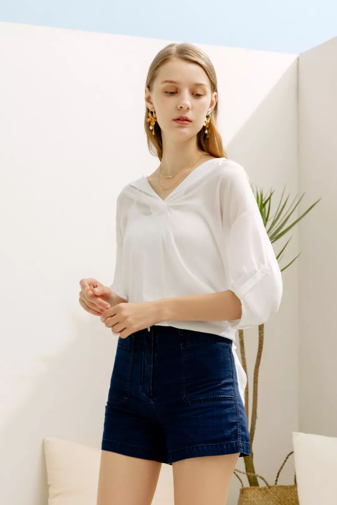 薄如蝉翼的天丝衣角,就算塞进裤子里也看不出明显痕迹,宽松的款式秒变修身设计,轻松打造细腰效果。